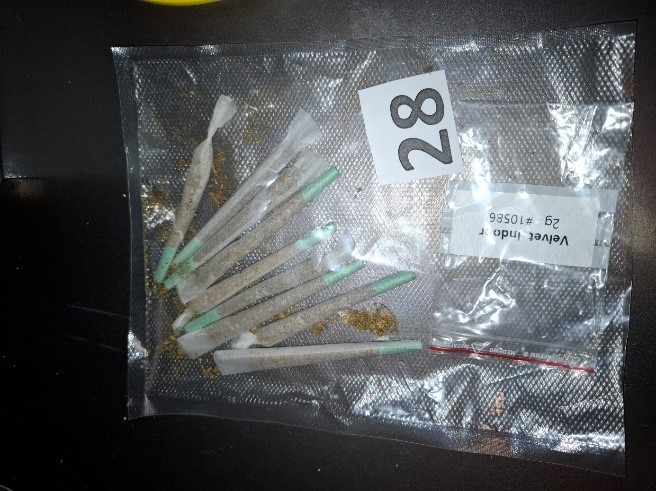 Med preiskavo so zasegli več kilogramov prepovedanih drog, in sicer nekaj več kot kilogram konoplje rastline, 62 elektronskih cigaret z vsebnostjo prepovedanih snovi, skoraj 2.500 čokoladnih bonbonov s skupno težo približno 31 kilogramov, ki so prav tako vsebovali konopljo, ter nekaj več kot šest gramov gnetljive snovi s sintetičnimi kanabinoidi. Zasegli so tudi pripomočke za pridelavo in predelavo drog, med drugim samozapiralne PVC vrečke, naprave za vakumiranje, folije, digitalne tehtnice, gotovino in več elektronskih naprav.