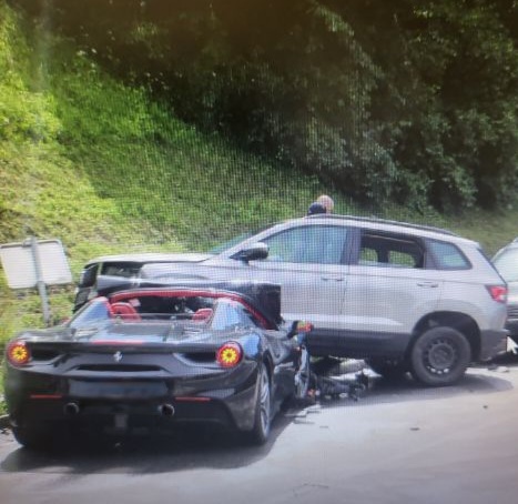 Voznik s ferrarijem in skoraj dvema promiloma alkohola v krvi trčil v tri vozila