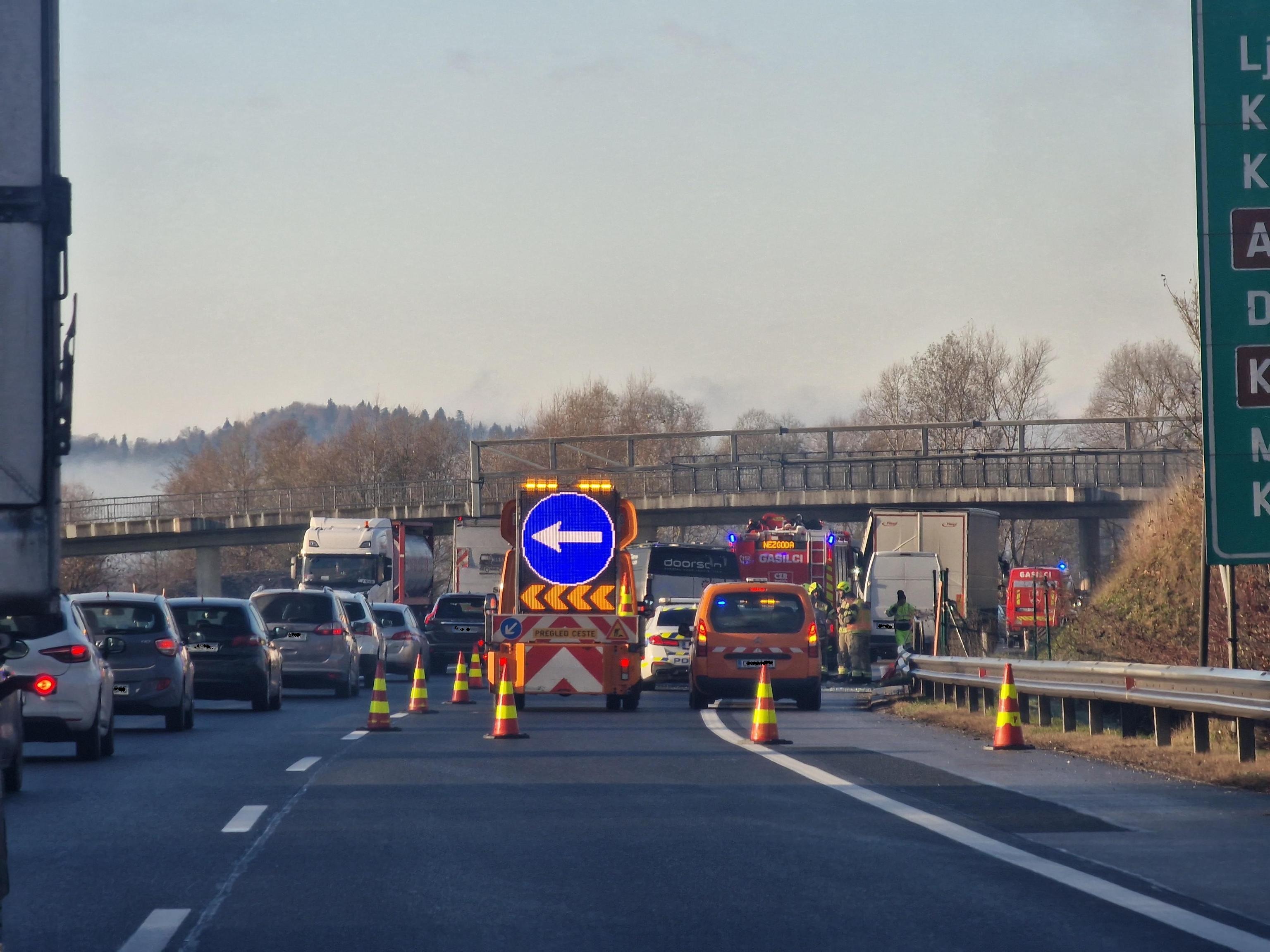 Zaradi odstranjevanja posledic je bil pred Krtino proti Ljubljani zaprt vozni pas, poroča prometnoinformacijski center, nastal je daljši zastoj.