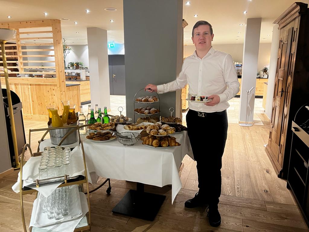 Po zajtrku s sodelavci v skupni jedilnici za zaposlene se moj delovni dan začne ob 7.30 s strežbo zajtrkov. Skrbim za goste in njihove želje, za bife, poskrbim pa tudi za priboljšek dobrodošlice, ki ga razdelim po sobah gostov, ki so ravnokar prispeli v hotel. Včasih si namreč kdo zaželi tudi ohlajeno penino (smeh). Ob 12.00 grem na kosilo in tako zaključim prvi del delavnika.