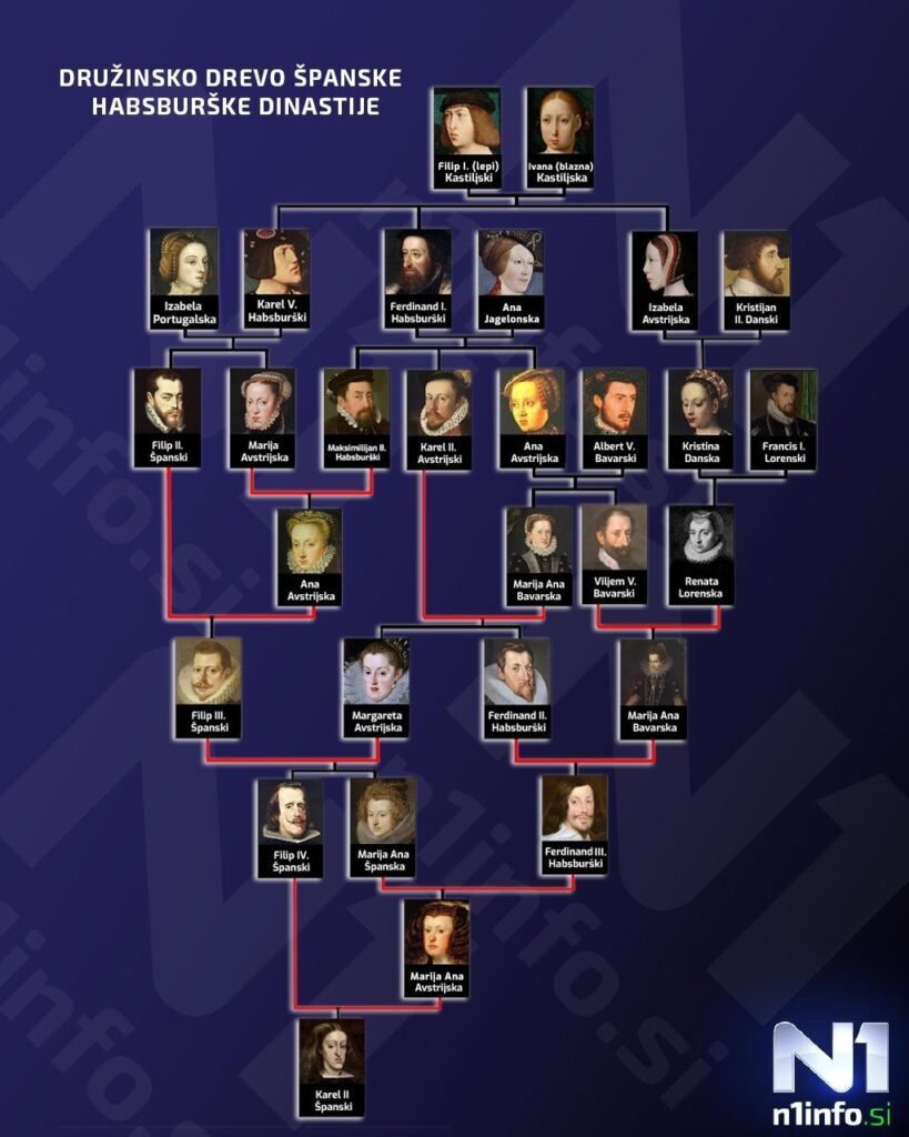 "Ko so Habsburžani prišli na španski prestol, je bila njihova prioriteta, da prestol zavarujejo tudi za prihodnje generacije, s sklepanjem porok v sorodstvu pa so drugim dinastijam želeli preprečiti, da bi se dokopali do njihovih posesti," je dejal dr. Antoličič. Z Ivano "Blazno" Kastiljsko poročenega Filipa I. se je oprijelo tudi ime Filip Lepi, nekateri njegovi nasledniki pa si niso zaslužili tega predikata. Kot je pojasnil sogovornik, so bili od Filipa I. do Karla II., kot zadnjega Habsburžana na španskem prestolu, praktično vsi kralji, ki so se zavihteli na oblast, poročeni s svojimi sestričnami, nečakinjami ali drugimi bližnjimi sorodnicami.