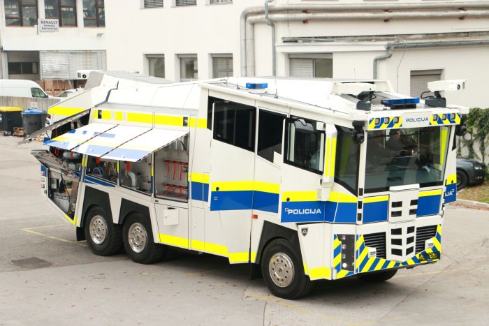 Ob tem je zapisal, da je policijski vodni top ustrezen z vidika varnostne zaščite voznika in upravljalcev vodnega topa, ima pa tudi velik rezervoar za vodo.
