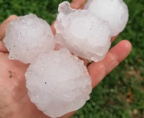 Na Dolenjskem so imeli rekordno veliko točo. Ta je v Gorenji Lepi Vasi blizu Krškega merila kar 12 centimetrov. Poškodovani so številni avtomobili, okna in strehe na hišah ter pridelki.
