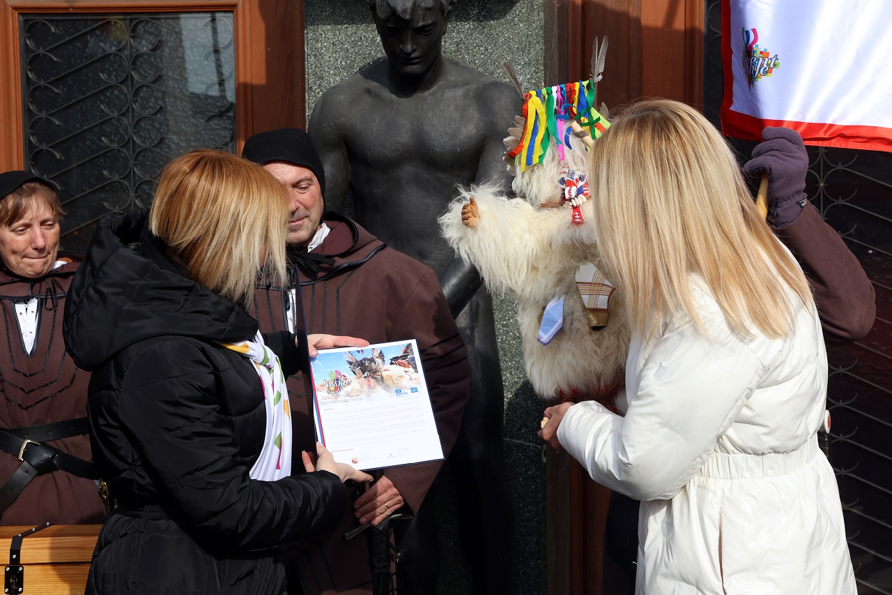 Podpredsednica se je v imenu predsednice DZ zahvalila za današnji obisk ptujskih pustnih mask. "Polepšali in popestrili ste nam dan," je dejala in dodala, da se zahvaljuje, ker so tudi v Ljubljano pripeljali peti letni čas. Hkrati je izrazila hvaležnost, da "gojijo to izjemno kulturno dediščino". Veseli se tudi obiska nedavno odprte Kurentove hiše, ki je zagotovo velika dodana vrednost za Mestno občino Ptuj.