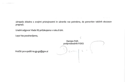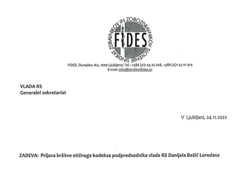 Tak ukaz naj bi minister dobil s strani predsednika vlade Roberta Goloba, izhaja iz dopisa, ki ga je Fides naslovil na generalni sekretariat vlade, danes pa ga je prvi objavil Bojan Požar. "V nasprotnem bodo s strani vladne pogajalske skupine ponujeni predlog podpisali ostali sindikati in bo Fides ostal sam," naj bi, kot še izhaja iz dopisa, pod katerega je podpisan Fidesov podpredsednik Damjan Polh, Zemljiču dejal Bešič Loredan. Zvečer smo dopis neuradno prejeli tudi v uredništvu N1.