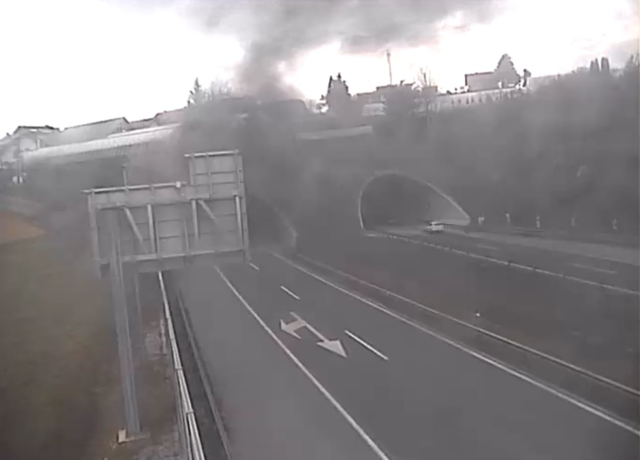 V predoru Mali Vrh na dolenjski avtocesti je v četrtek pozno popoldan zagorelo vozilo.