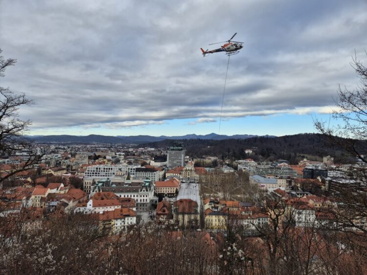 Ta teden je namreč potekala sečnja dreves na Grajskem griču v Ljubljani s pomočjo helikopterja. V sredo se je sicer med sečnjo odlomil del drevesa in zdrsel do hiše na Mestnem trgu. Pri tem je nastala manjša škoda, poškodovan ni bil nihče.