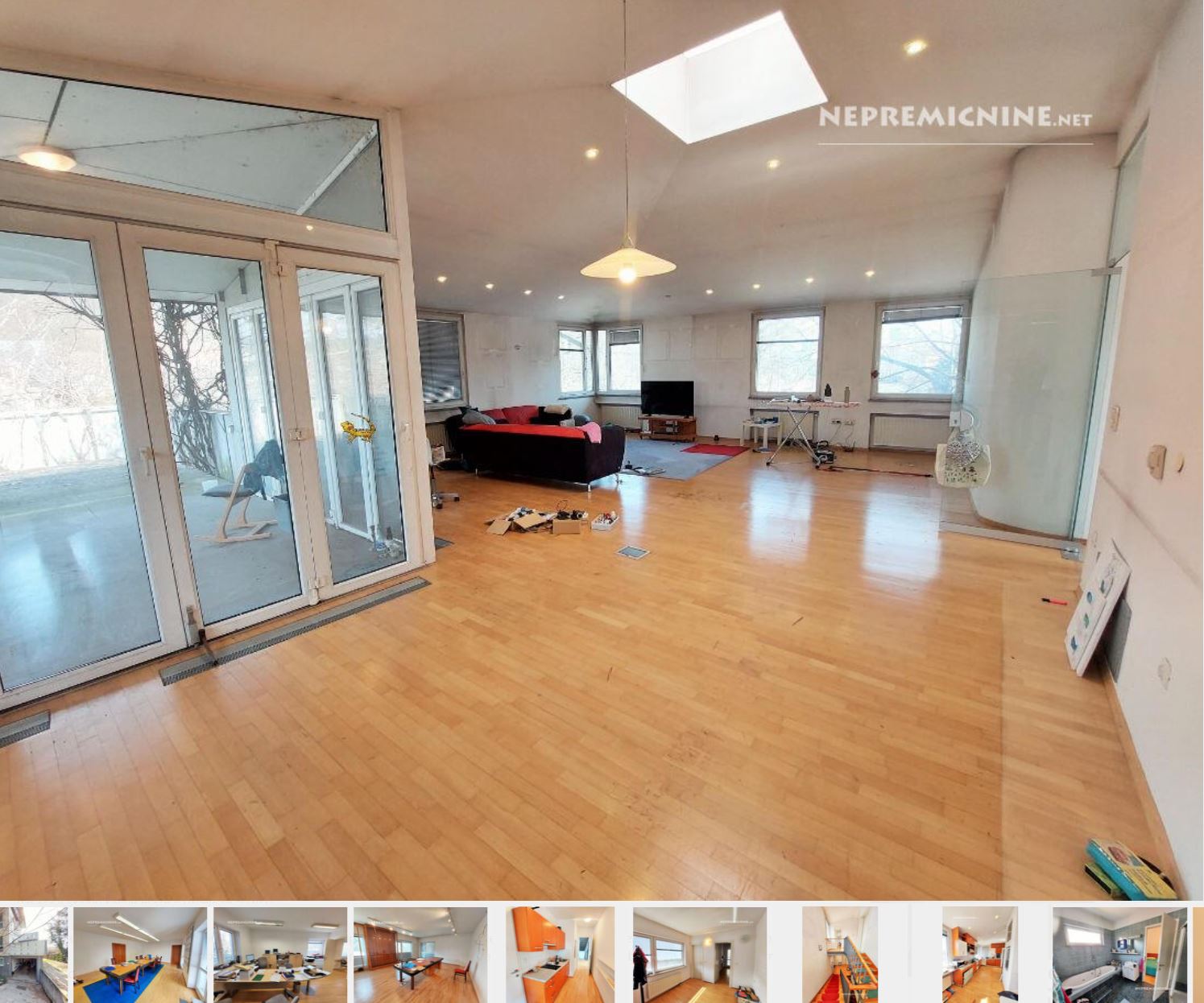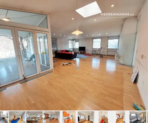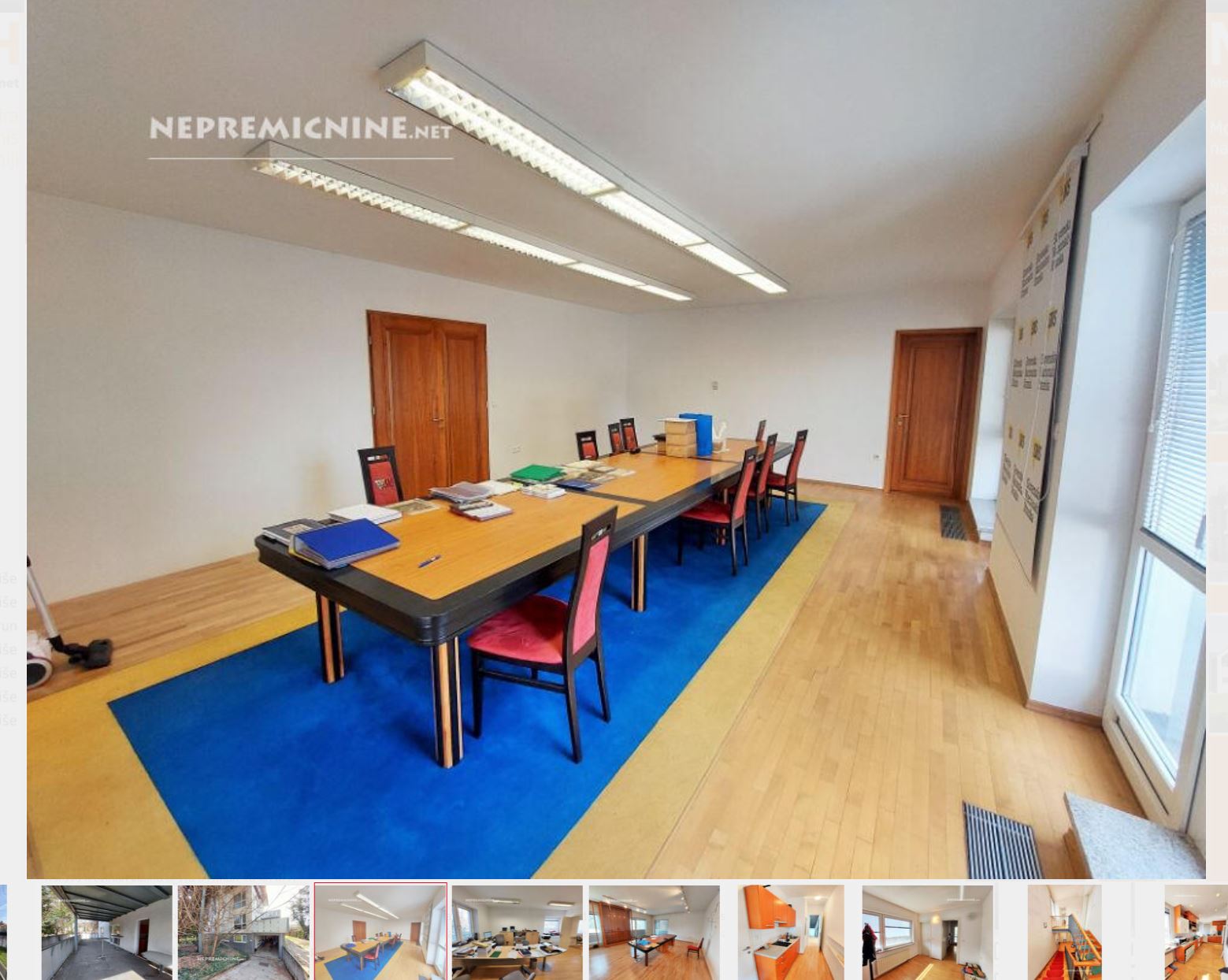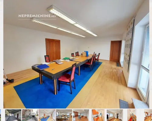 "Vsaka etaža, razen kletne, ima tudi večjo teraso. Prodaja se z nekaj opreme (dve večji sejni mizi, vgradne vitrine z neprebojnimi stekli ...) ali po dogovoru. Talne obloge so v lesu in keramiki. V objektu je tudi manjše tovorno dvigalo. Prostori so svetli, saj ima zgradba precej steklenih površin. Ogrevanje stavbe in sanitarne vode je na mestni plin, mansarda je klimatizirana," agencija navaja v oglasu.