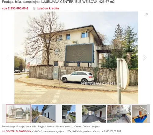 Predsednik Slovenske nacionalne stranke (SNS) Zmago Jelinčič Plemeniti prodaja svojo vilo na Bleiweisovi cesti v Ljubljani. Hišo, ki leži na robu centra mesta in je bila zgrajena leta 2004, na največjem nepremičninskem portalu v Sloveniji nepremicnine.net trži nepremičninska družba Royal invest. Nekdanji poslanec želi zanjo iztržiti 2.950.000 evrov.