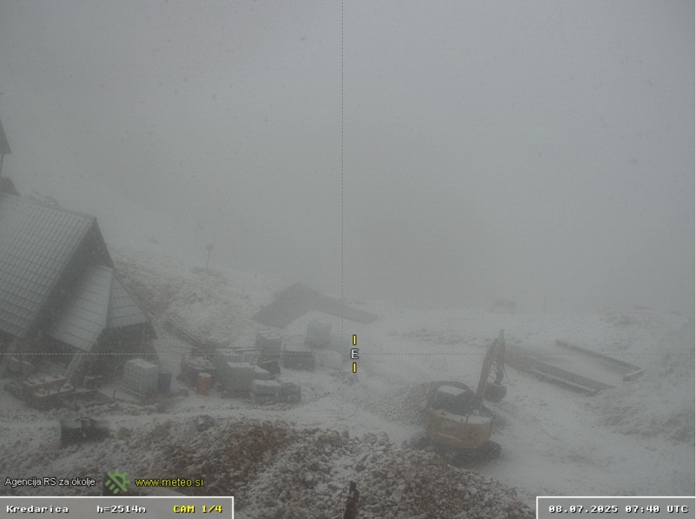 Na višjeležečih vremenskih kamerah agencije za okolje (Arso) se tako že vidi julijska belina, denimo na Kaninu in Kredarici. Na naši najvišji meteorološki postaji je bilo ob 10. uri le 0 stopinj Celzija.