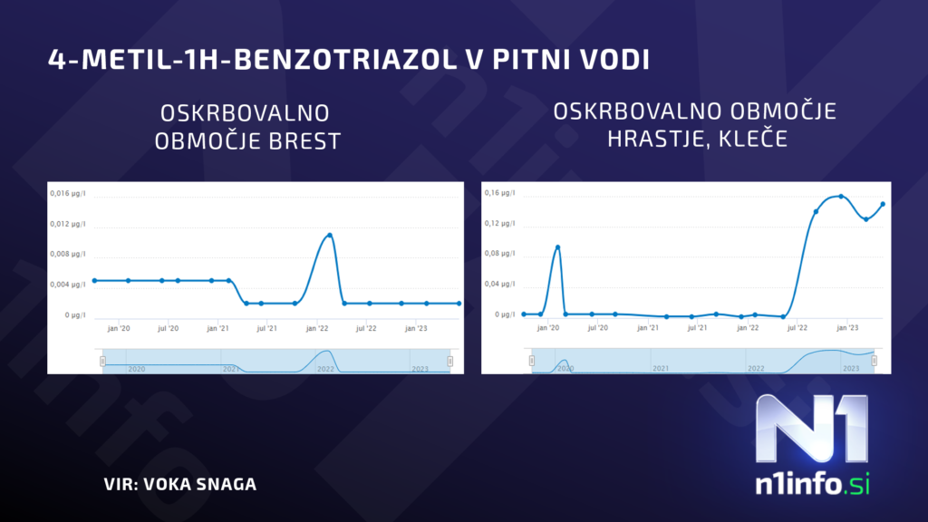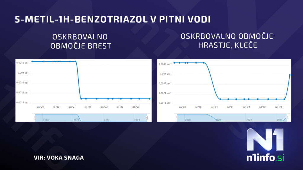 Javno podjetje VOKA SNAGA, ki upravlja ljubljanski vodovod, je v lanskem letu pri nadzoru pitne vode zaznalo sledi benzotriazolov v koncentracijah, ki so nad mejo poročanja analitskih metod. Gre za snovi, katerih prisotnost merijo v občasnih nadzorih. Ti potekajo nekajkrat letno, pogostost nadzorov pa je odvisna od izpostavljenosti lokacije.