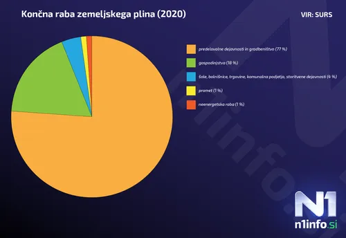 Pri plinu gospodinjstva porabijo še manjši delež kot pri elektriki. Industrija in gradbeništvo porabita več kot tri četrtine vsega plina, ki pride v Slovenijo, gospodinjstva pa manj kot petino. Štirje odstotki plina se porabijo v šolah, bolnišnicah, trgovinah in storitvenem sektorju. V Sloveniji sicer letno porabimo približno 0,8 milijarde kubičnih metrov plina, v Evropski uniji pa okrog 400 milijard kubičnih metrov.