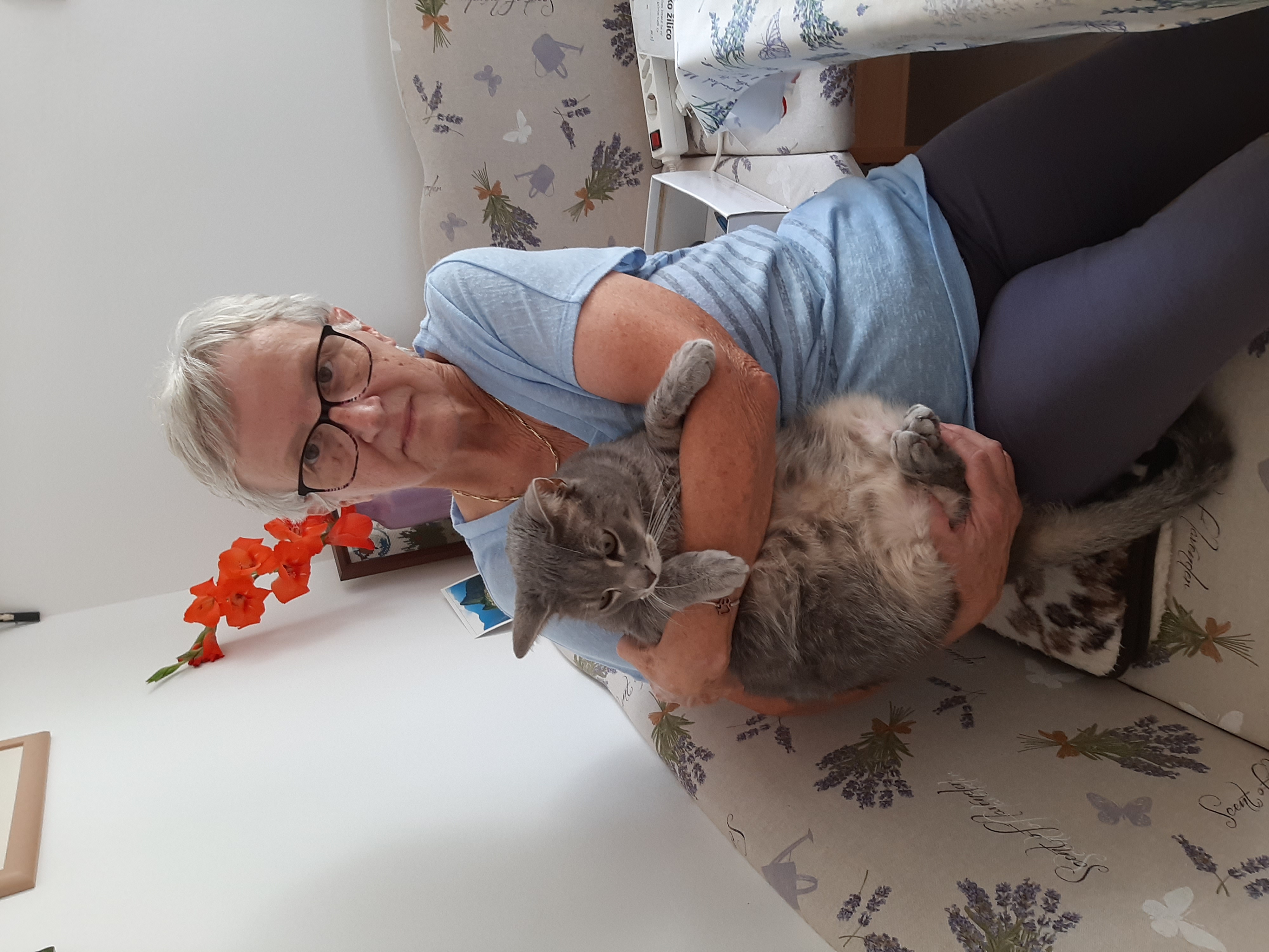 Cveta Berložnik in njen mačkon Buli. | Cveta Berložnik in njen mačkon Buli.