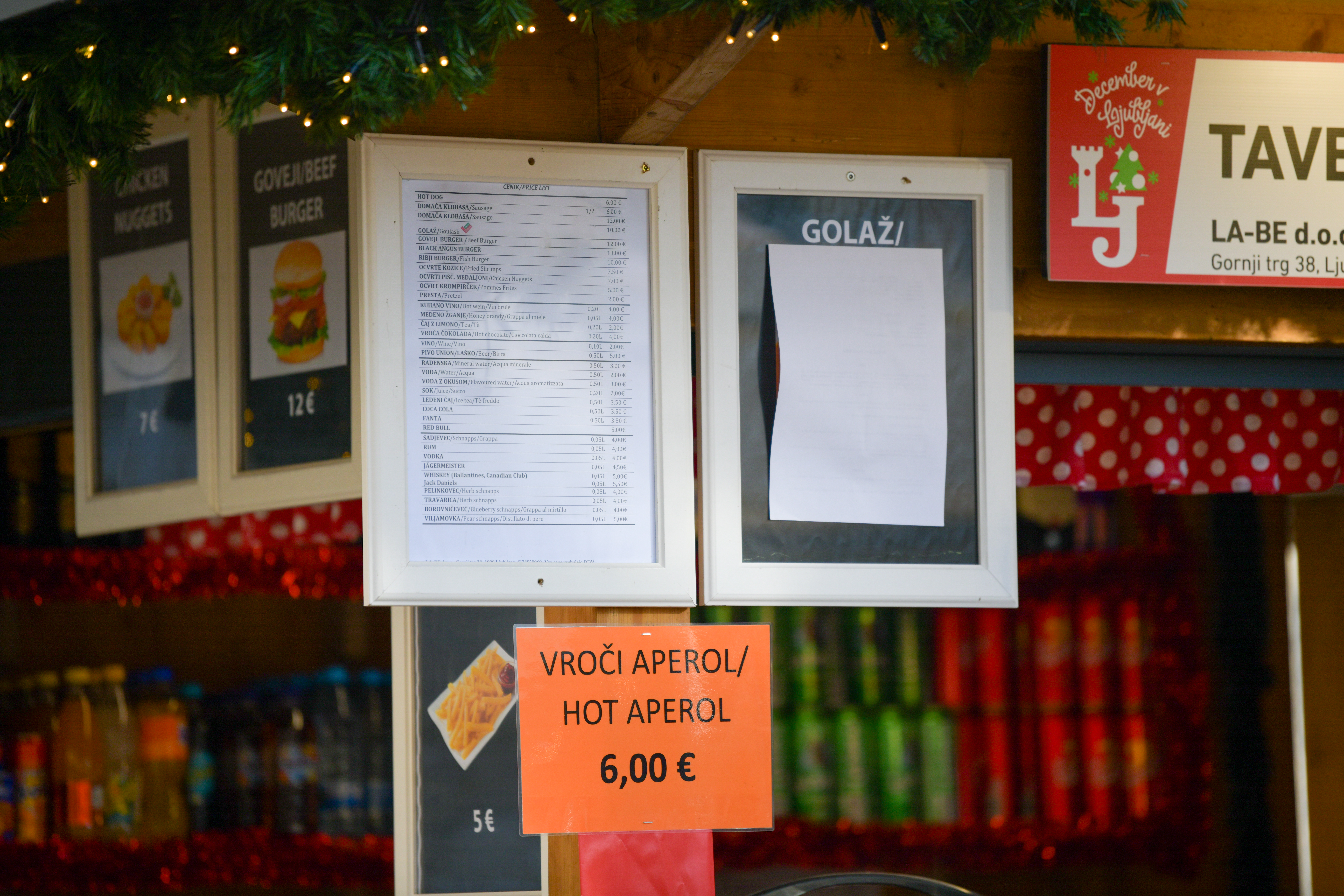 S prižigom prazničnih lučk v Ljubljani so obiskovalce začele vabiti tudi premnoge stojnice s hrano in pijačo v središču mesta. Preverili smo ponudbo, cene in povpraševanje letos – predvsem za kuhano vino, ki je pri strankah že tradicionalno najbolj priljubljena izbira.