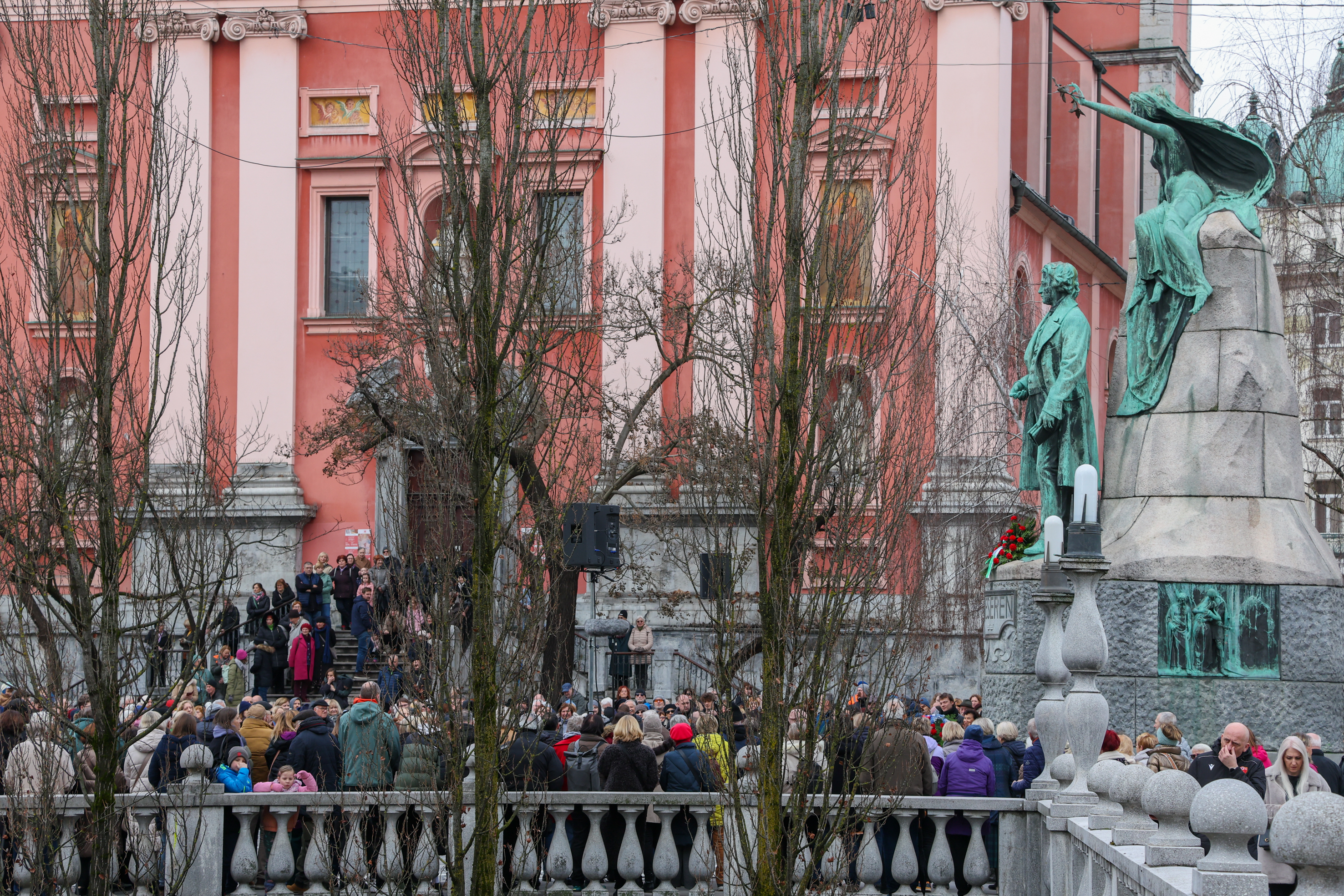 S tradicionalnim recitalom Prešernovih pesmi pa so se našemu največjemu pesniku tudi letos poklonili na Tromostovju. Pobudnik recitala Aleš Jan je ob tem spomnil na začetke te prireditve pred 40. leti, ko je pomenil tudi neke vrste upor proti idejam takratne Jugoslavije.