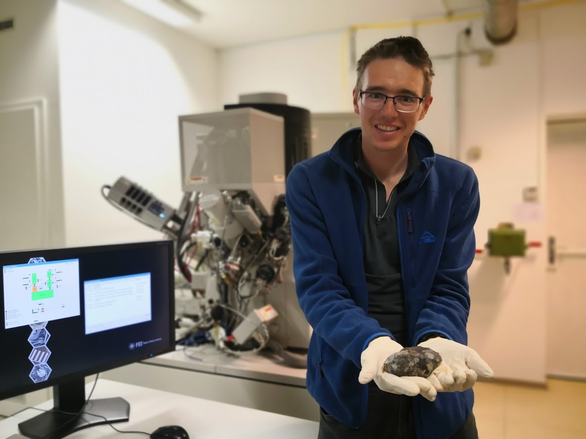 Prvi najdeni kos meteorita (na fotografiji zgoraj) pa je samo en samostojen klast v breči, ki je dobesedno izpadel ven iz breče med fragmentacijo meteoroida visoko v Zemljini atmosferi, pravi Ambrožič.