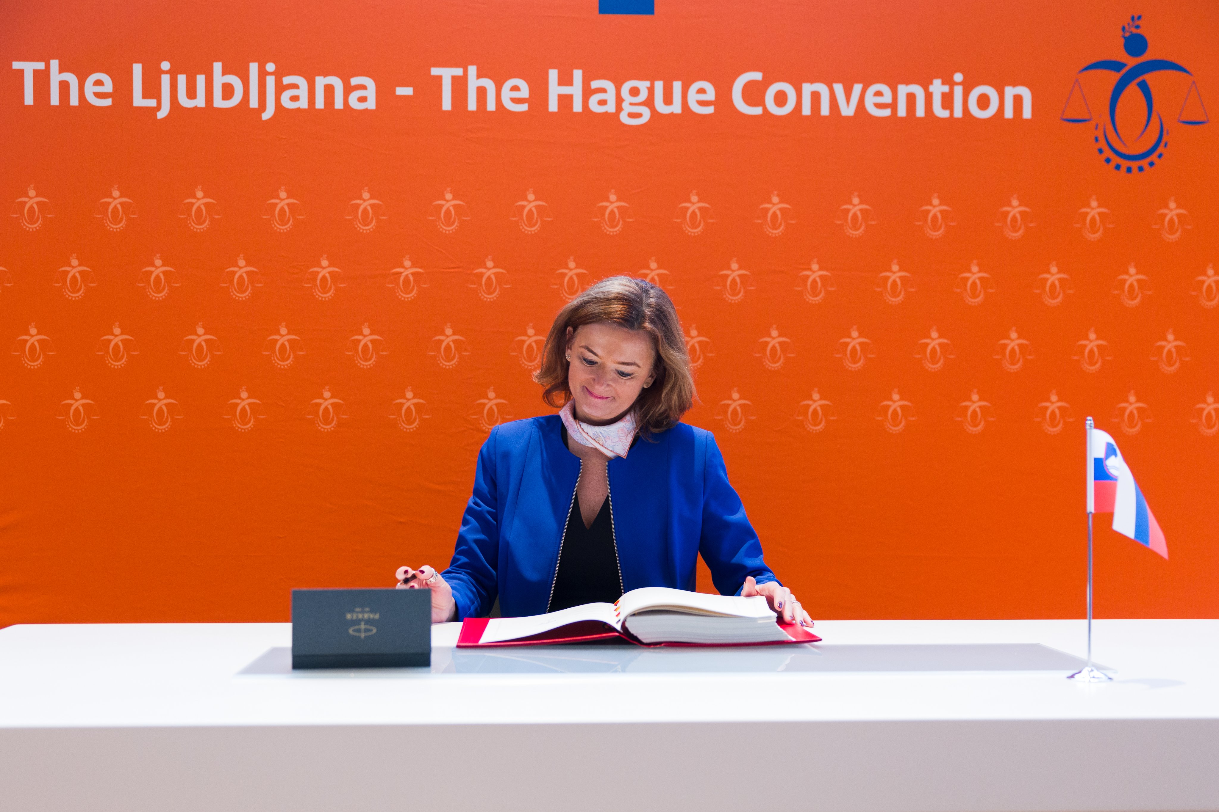 "Vesela sem, da sem v imenu Slovenije ljubljansko-haaško konvencijo podpisala v trojni vlogi, kot predstavnica države, ki aktivno prispeva k boju proti nekaznovanosti, kot ena od držav pobudnic konvencije in kot gostiteljica diplomatske konference v Ljubljani, na kateri je bila sprejeta konvencija," je dejala Fajon.
