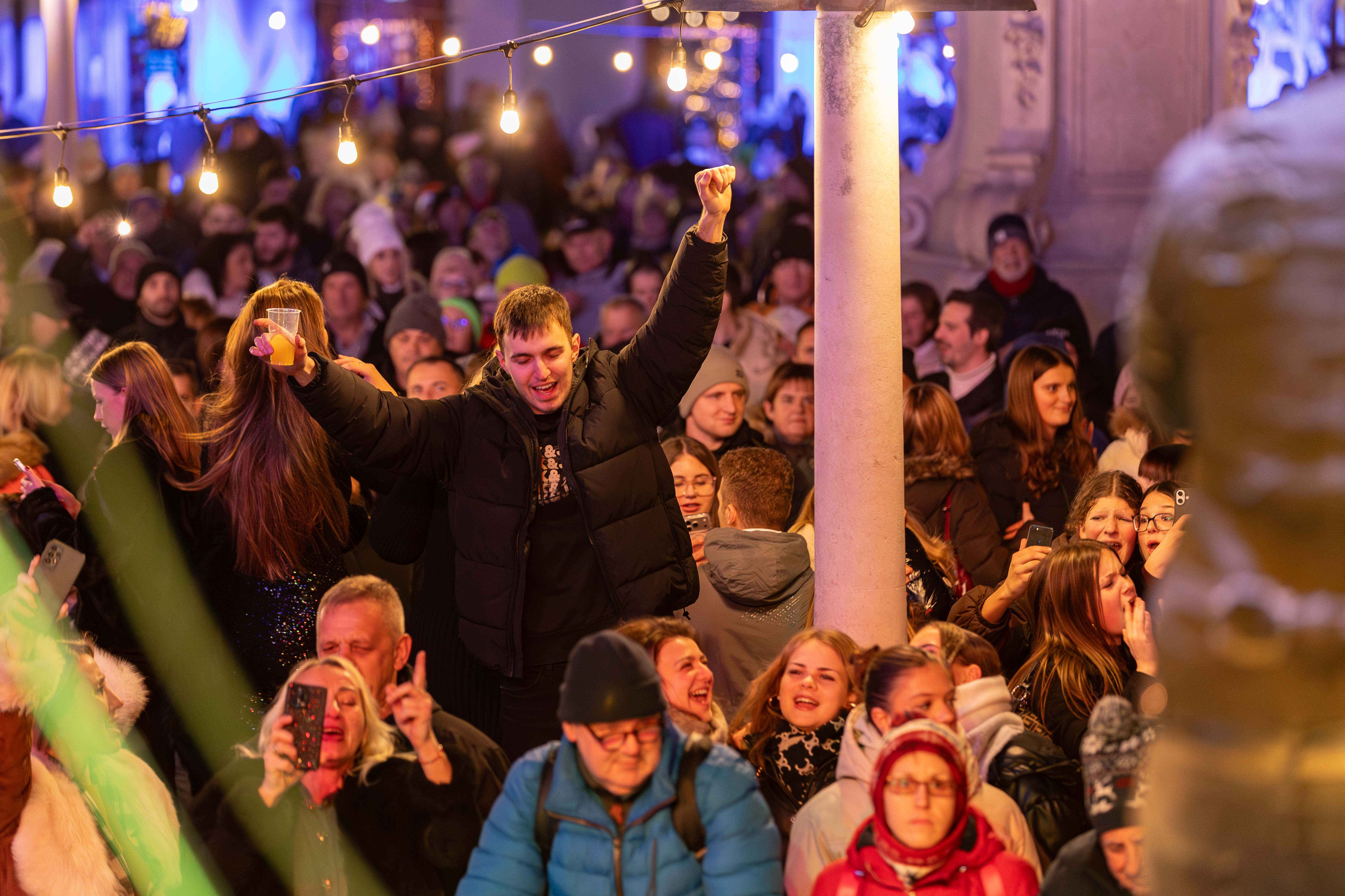 Trg Leona Štuklja, ki je bil osrednje silvestrsko prizorišče štajerske prestolnice, se je do dodobra napolnil. Večtisočglava množica, skozi ves dan se je na prizorišču in neposredni bližini zvrstilo okoli 10.000 ljudi, je skupaj odštevala do novega leta. Ob nizkih temperaturah in jasnem nebu so za zabavo in dobro voljo skrbeli Karneval band in Domen Kumer, je povedala Monika Jurišič Hlevnjak iz Zavoda za turizem Maribor.
