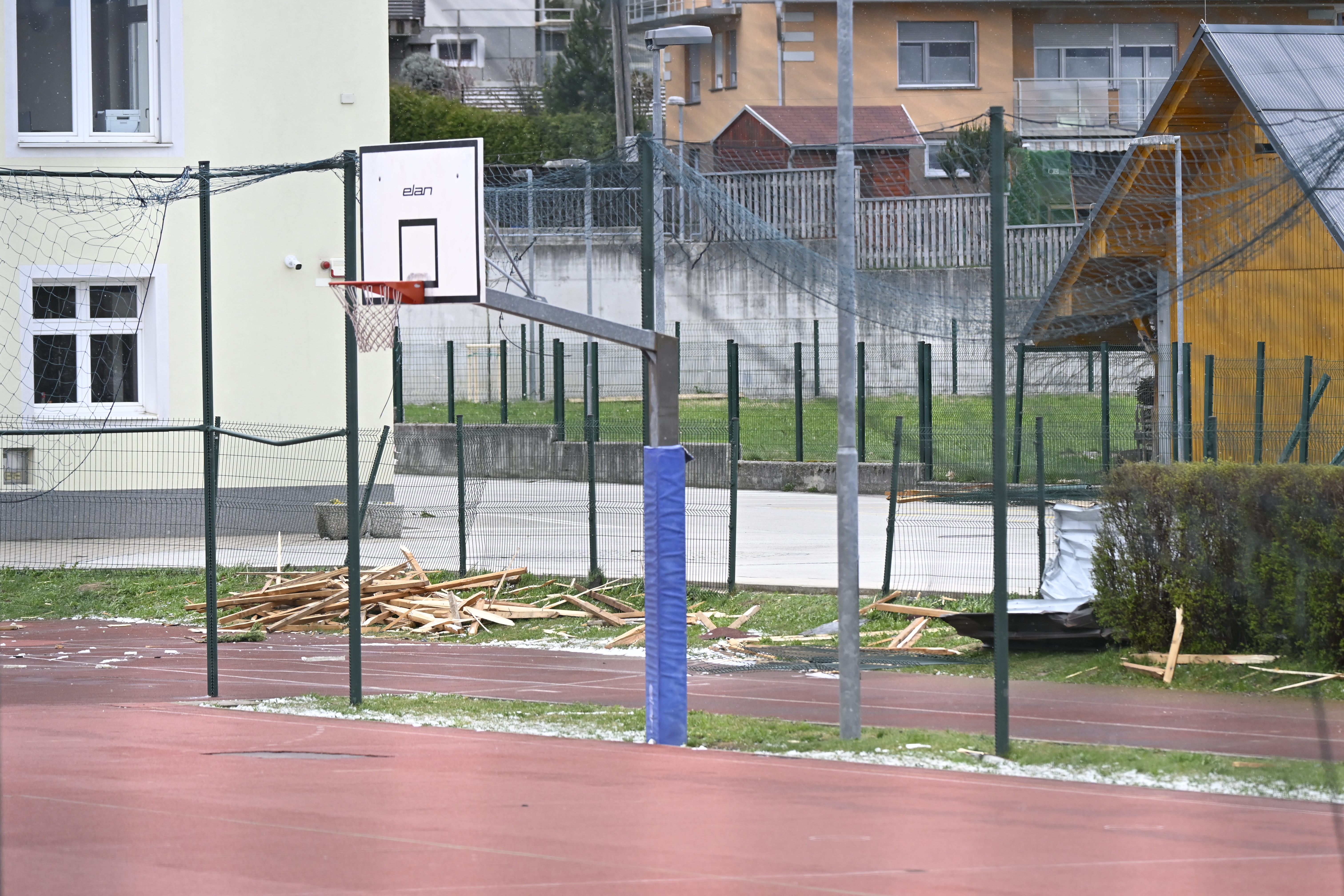 Na mariborski osnovni šoli Franceta Prešerna so danes odpovedali pouk, saj je veter s strehe pometal nekaj sončnih panelov, zato so se zaradi varnosti otrok odločili, da danes ostanejo doma.