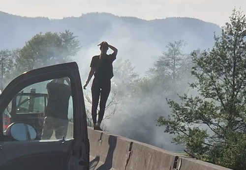Zavod Reševalni pas je na družbenem omrežju X delil fotografijo, ki prikazuje, da sta med zastojem stopila iz vozila in se sprehodila do roba avtoceste. Potnica je nato stopila na ogrado avtoceste in se obrnila proti okolici, moški pa jo je, vsaj tako je razvidno s pripete slike, ob tem fotografiral.