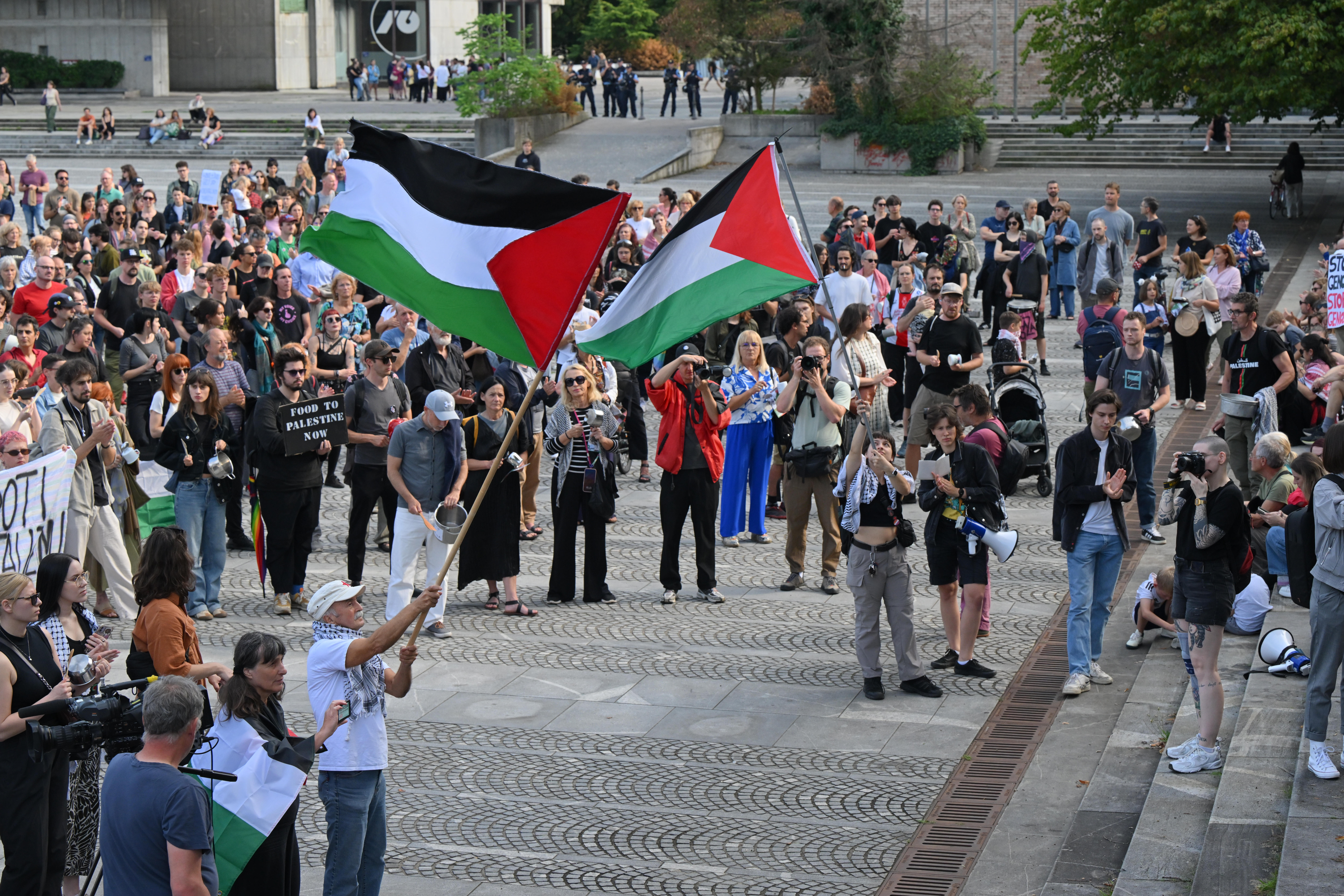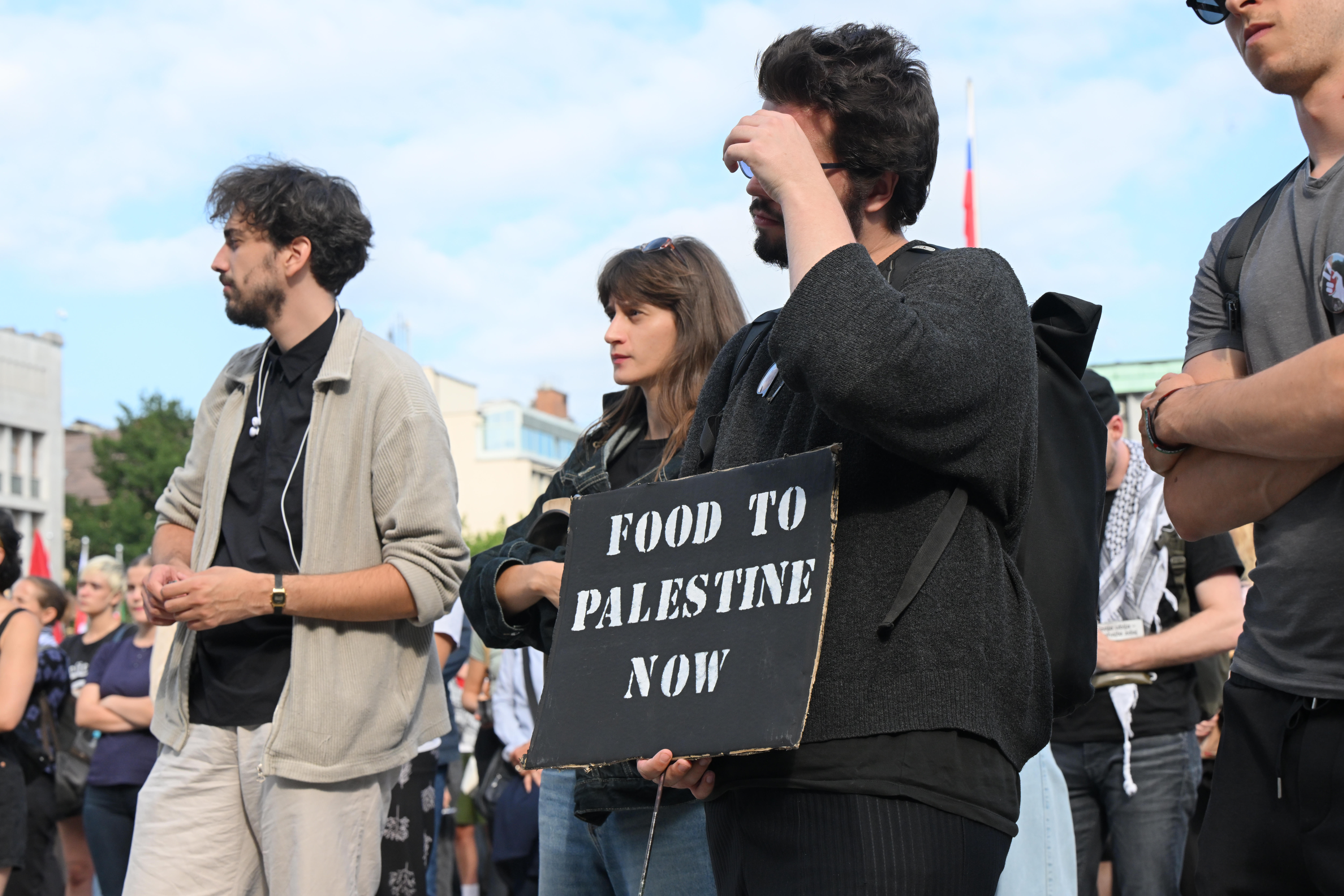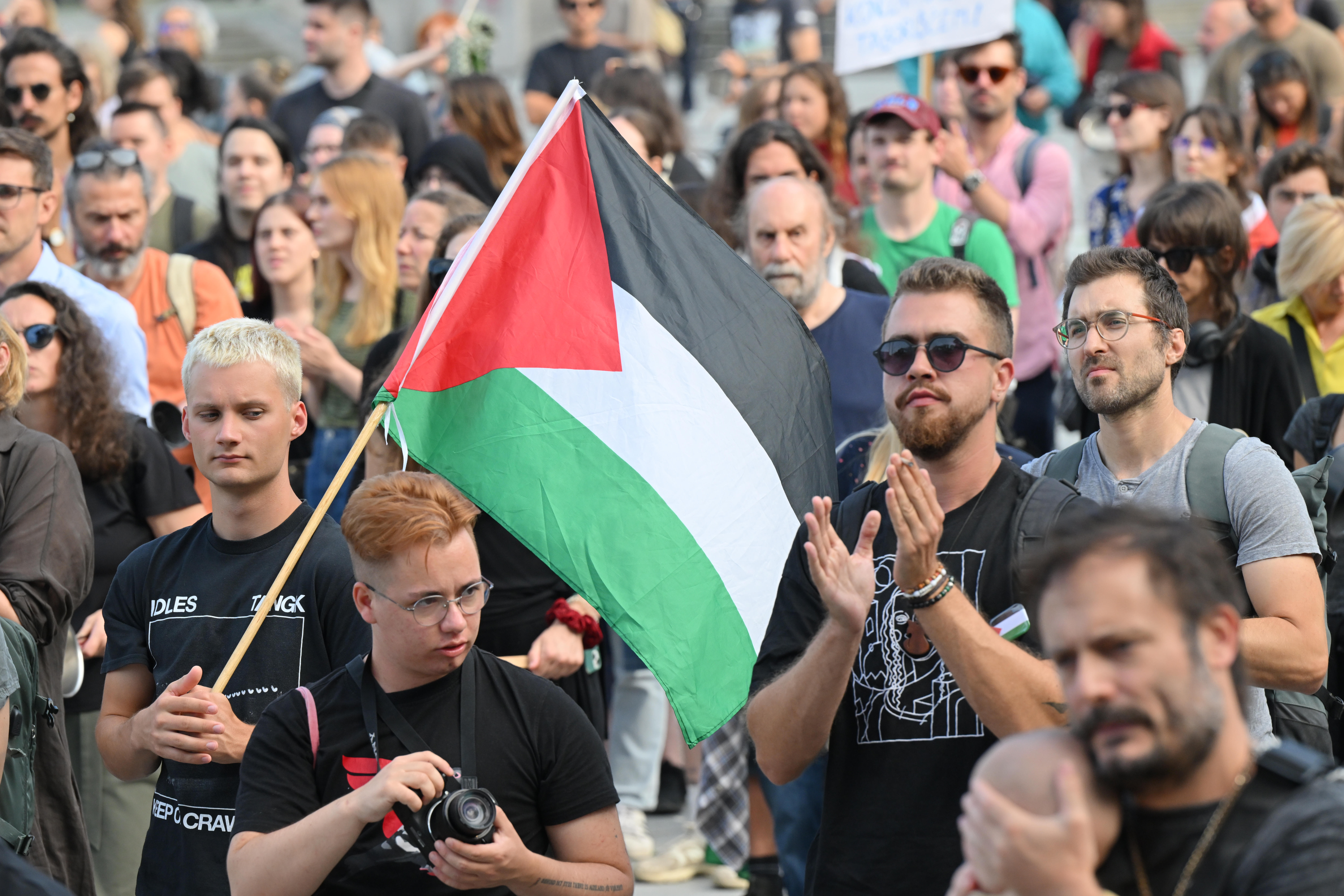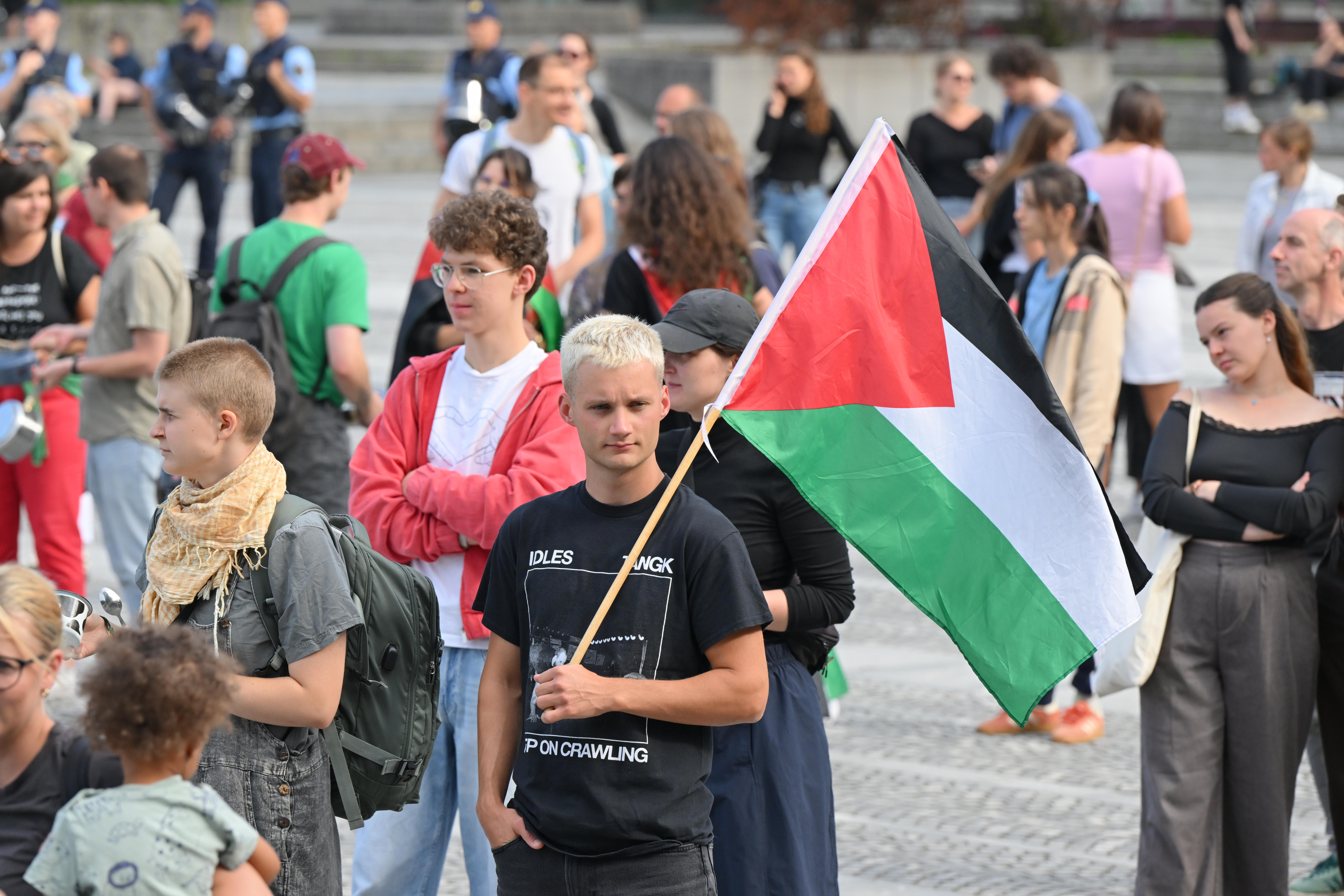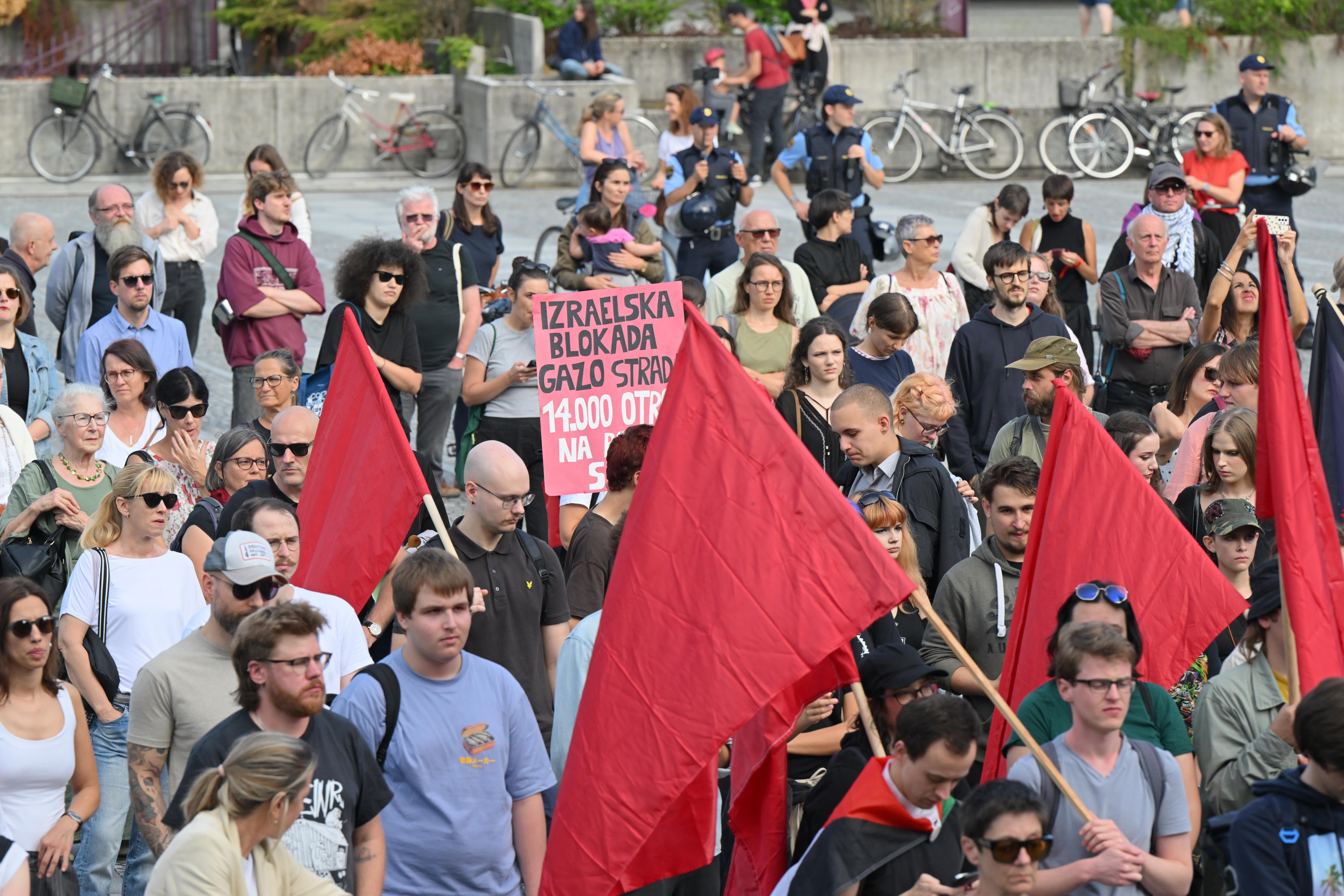 Na ljubljanskem Trgu republike se je danes zbrala množica več sto protestnikov, ki so pod sloganom Gaza strada, kaj dela vlada!? opozarjali na izraelsko stradanje Palestincev.