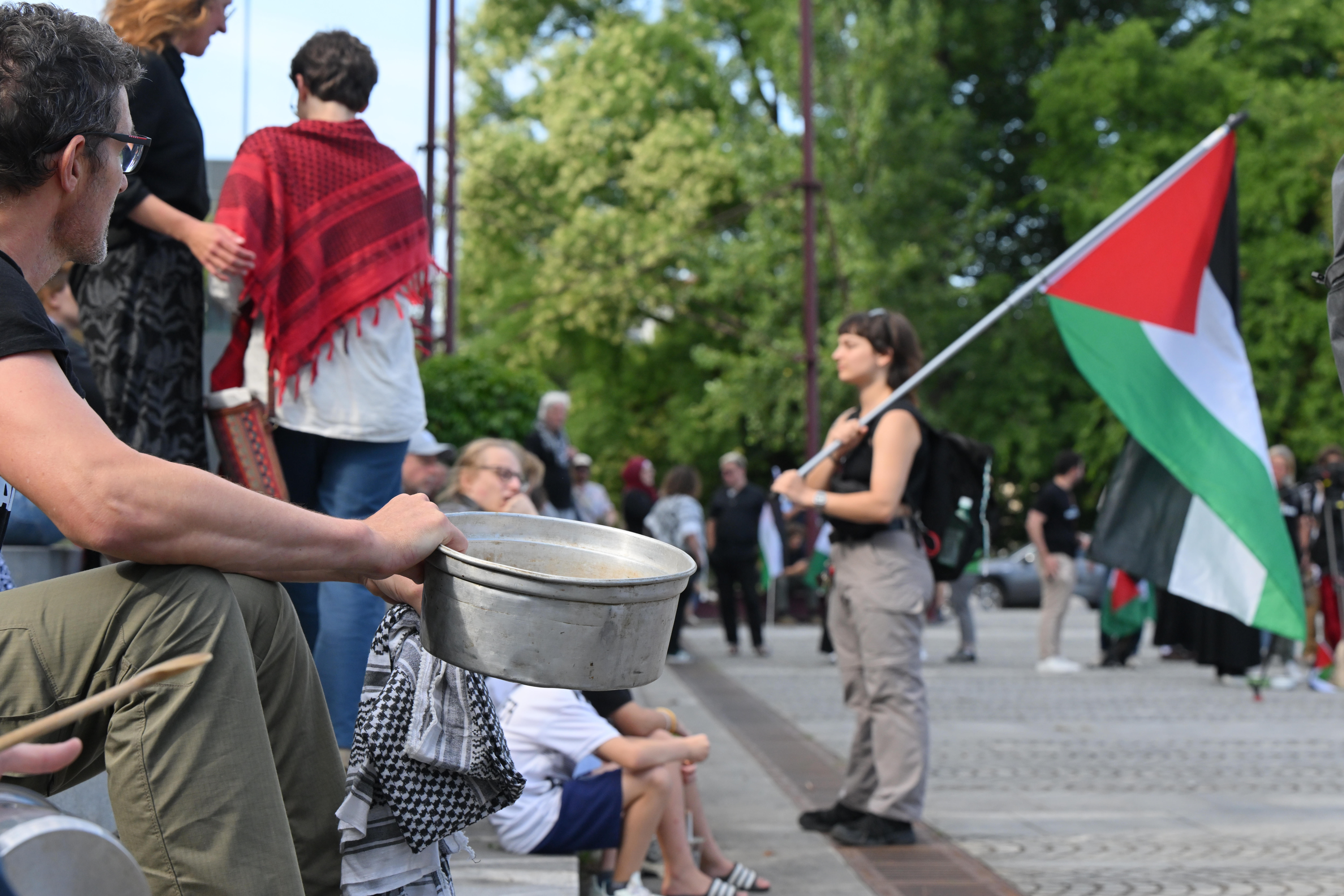 Organizatorji so pred protestom pozvali udeležence, naj s seboj prinesejo lonec in žlico, da z ropotom opozorijo na lakoto v palestinski enklavi.