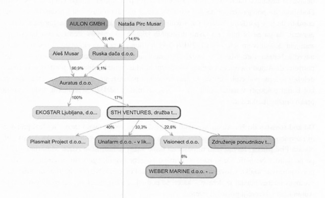 "Zakaj bi bil Aulon, ki je registriran za upravljanje z deleži tujih podjetij, lastnik podjetij posredno prek Ruske dače in ne neposredno," se na primer sprašujejo avtorji analize. "To ni poslovno logično," pravijo in nadaljujejo, "je pa očitno, da ravno krak Nataša Pirc Musar - Ruska dača - Auratus predstavlja samostojen krak stabilizacije lastniške strukture STH Ventures in da meša transparentnost lastniškega kraka z Aulonom."