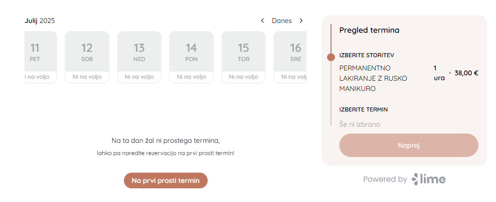 Prvi prost termin v salonu je bil na voljo še isti dan ob 15. uri, pri čemer lahko sklepamo, da je neka stranka odpovedala. V naslednjih desetih dneh namreč ni bil na voljo noben prost termin za manikuro.