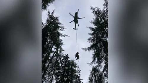 Policija je na družbenem omrežju delila nevsakdanji prizor, ko so s helikopterjem reševali govedo, ki se je znašlo v težavah.