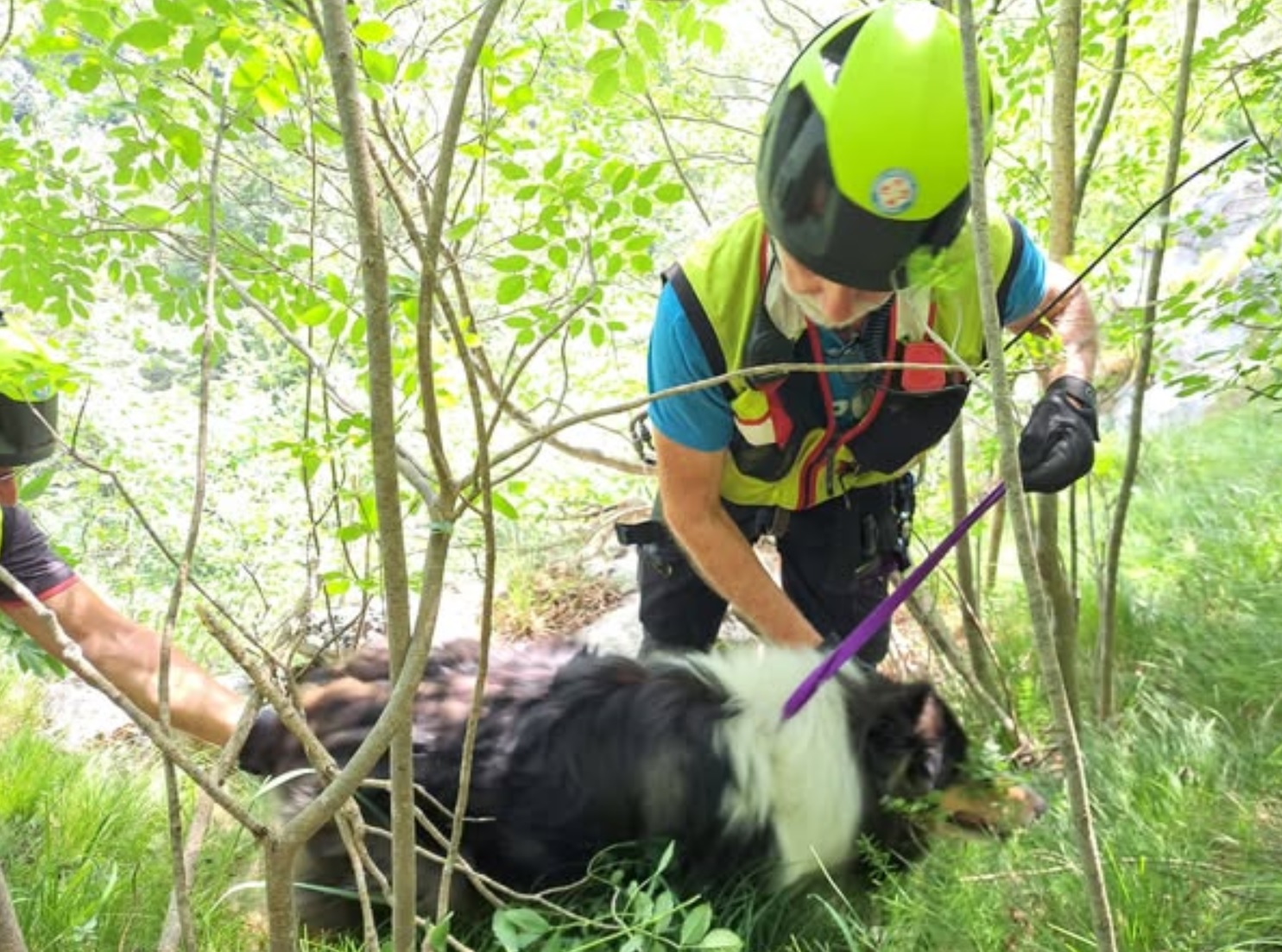 Gorske reševalce iz Ljubljane je v četrtek čakala nevsakdanja reševalna akcija. Na skrajni jug države so odhiteli na pomoč psički, ki je obtičala na skalni polici.