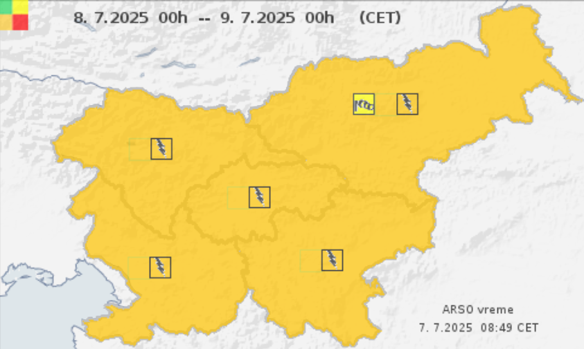 Ker bodo zjutraj ponovno možne posamezne močnejše nevihte s krajevnimi neurji, ob morju pa bo predvsem zgodaj zjutraj možna tramontana (kratkotrajen prehoden veter, ki na Jadranu piha s severa), je Agencija RS za okolje (Arso) za vso državo izdala oranžno vremensko opozorilo.