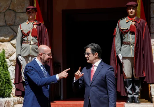 Predsednik Evropskega sveta Charles Michel se je danes na srečanju z makedonskim predsednikom Stevom Pendarovskim na Ohridu zavzel za čimprejšnji začetek pristopnih pogajanj s Severno Makedonijo in Albanijo. Kot je dejal, je to najvišja prioriteta. Začetek pogajanj s Severno Makedonijo že dlje časa blokira njena soseda Bolgarija.