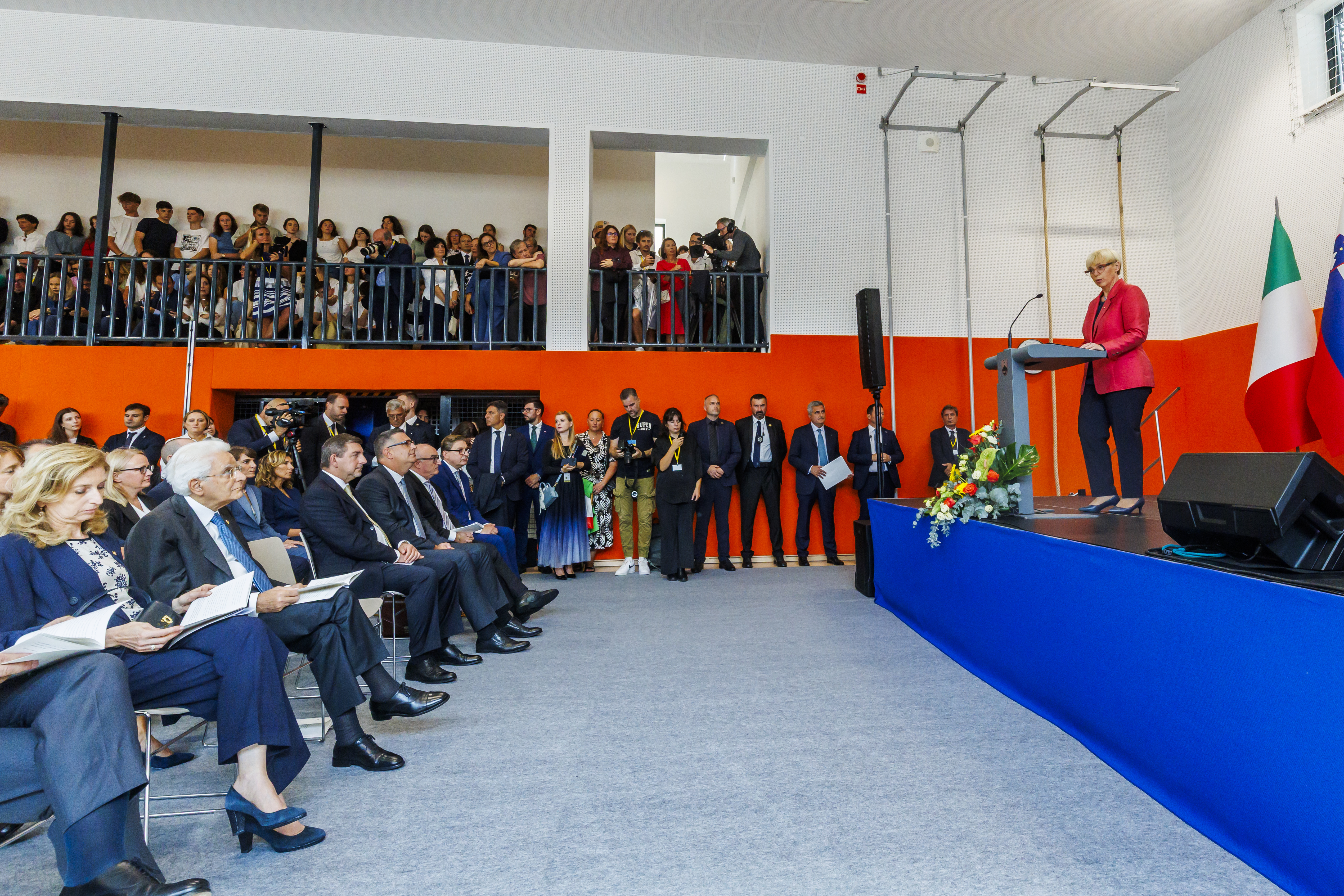 Na prireditvi v palači Collegio dei Nobili so prisotni z aplavzom simbolično odprli prenovljeno šolo. Slovenska predsednica, ki italijanskega kolega gosti na uradnem obisku, je ob tem izpostavila, da je danes velik praznik za vse, ki verjamejo v moč kulture in izobraževanja.