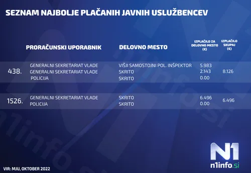 Zanimivo pa je, da sta višje izplačilo kot Robert Golob dobila dva od treh njegovih varnostnikov. Kot je videti s seznama, je namreč na 438. mestu seznama oseba, ki izplačilo dobiva iz generalnega sekretariata vlade (višji policijski inšpektor, drugi del "skrito") in policije (v oktobru s tega naslova sicer brez izplačila). Podobno velja za še dve osebi na 1.526. mestu in 1.985. mestu.