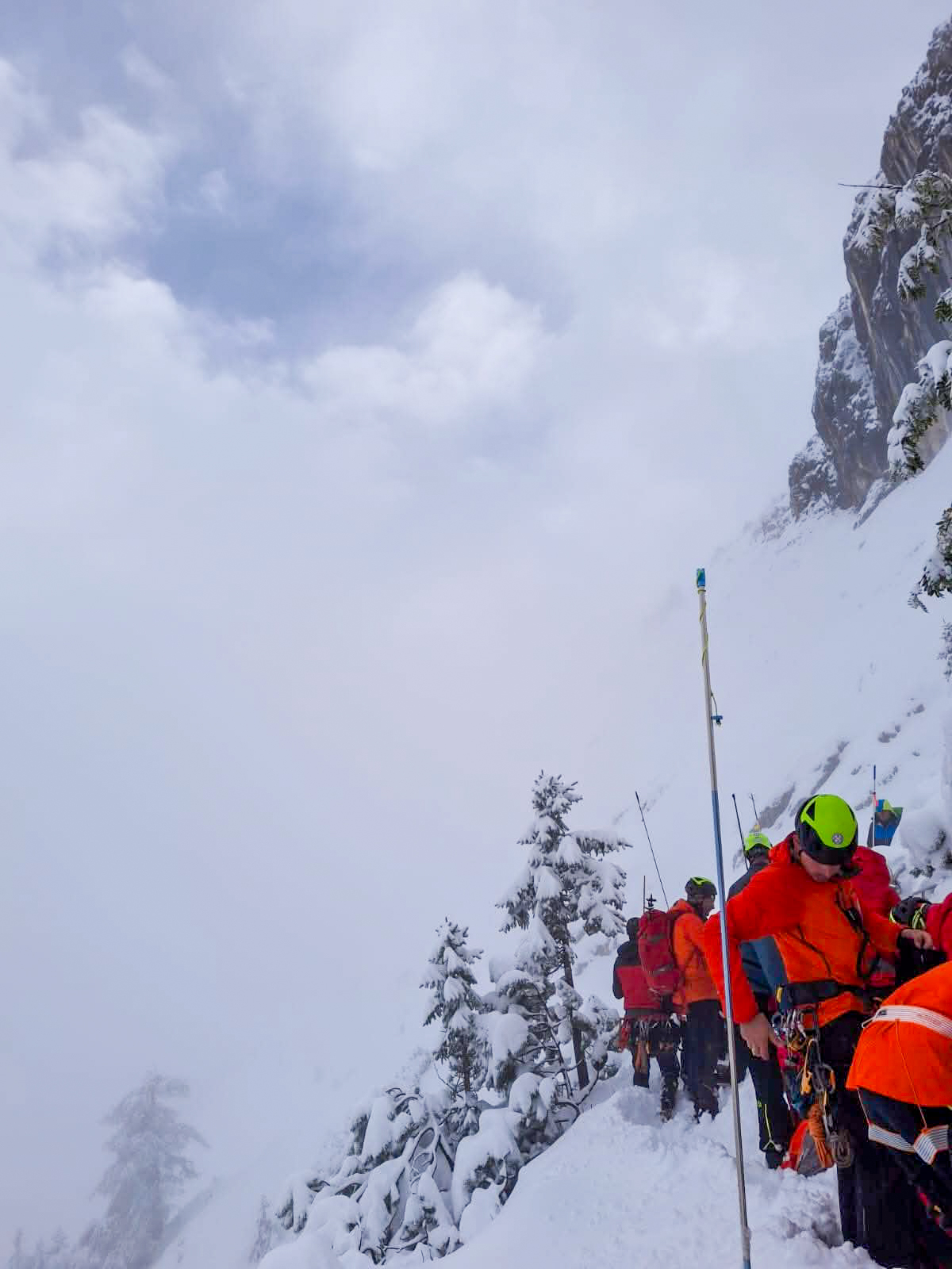Razmere na terenu so bile namreč zelo zahtevne, saj sta dež in sneg ter povečana možnost proženja snežnih plazov dodatno oteževala delo reševalcev.