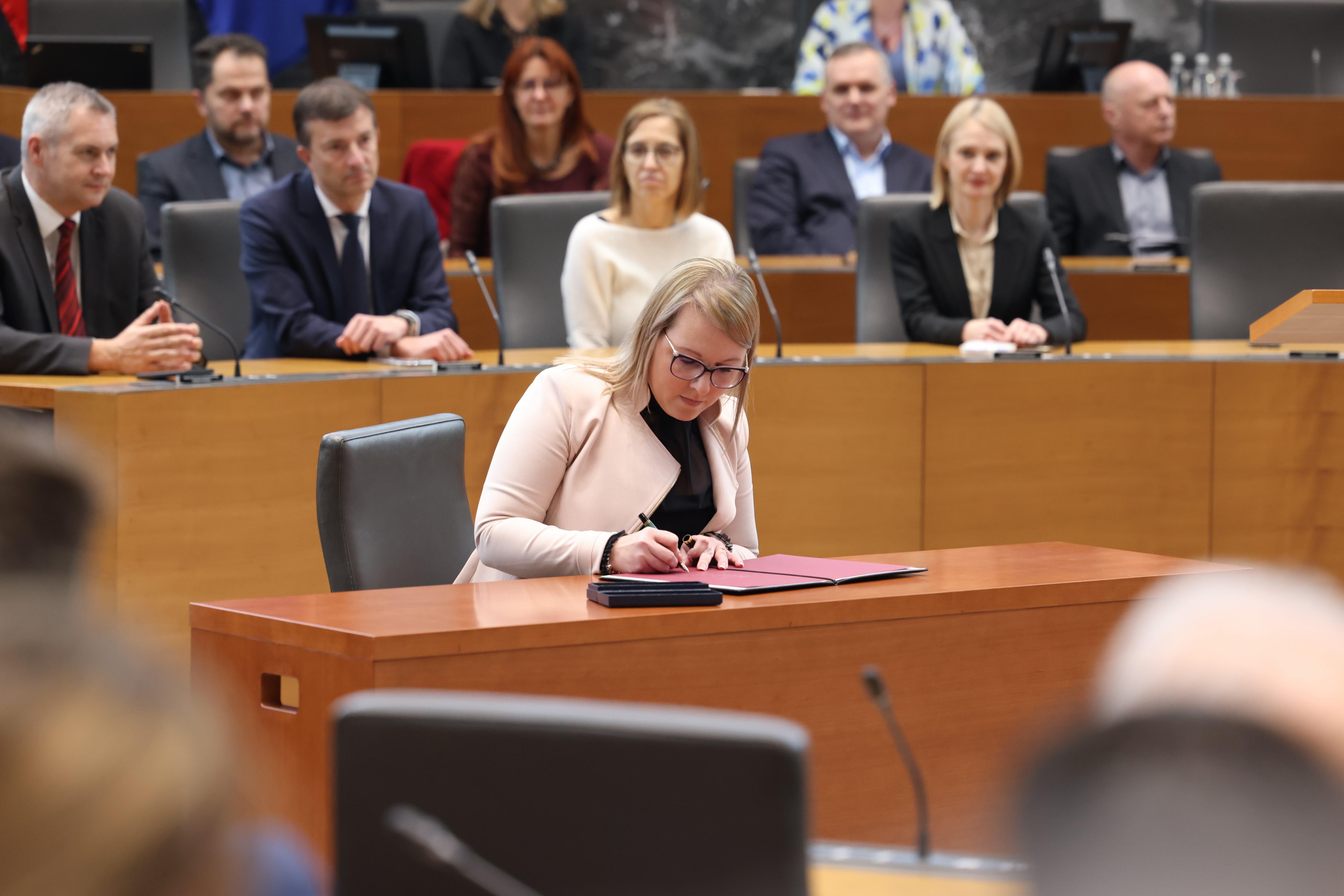 Poslanci so potrdili Matejo Čalušić za ministrico za kmetijstvo, gozdarstvo in prehrano. Podprlo jo je 45 poslancev, 29 jih je bilo proti. S tem je na čelu resorja nasledila lani jeseni razrešeno Ireno Šinko. Poslanci so v razpravi izpostavili, da jo na pomembnem resorju čaka veliko izzivov, pri čemer jo v koaliciji podpirajo in verjamejo, da bo prava sogovornica kmetov, medtem ko v opoziciji menijo, da ne bo kos funkciji. Čalušić je prisegla pred DZ za tem pa od dosedanjega začasnega vodje resorja Marjana Šarca tudi že prevzela posle. Vlada je sicer na današnji dopisni seji ponovno imenovala državna sekretarja na ministrstvu za kmetijstvo, gozdarstvo in prehrano Evo Knez in Blaža Germška.
