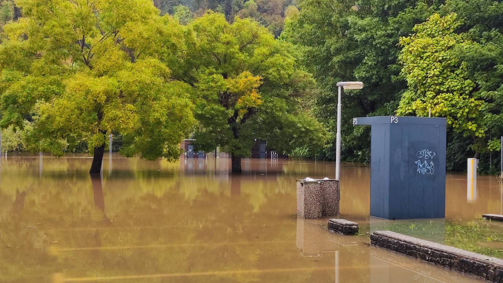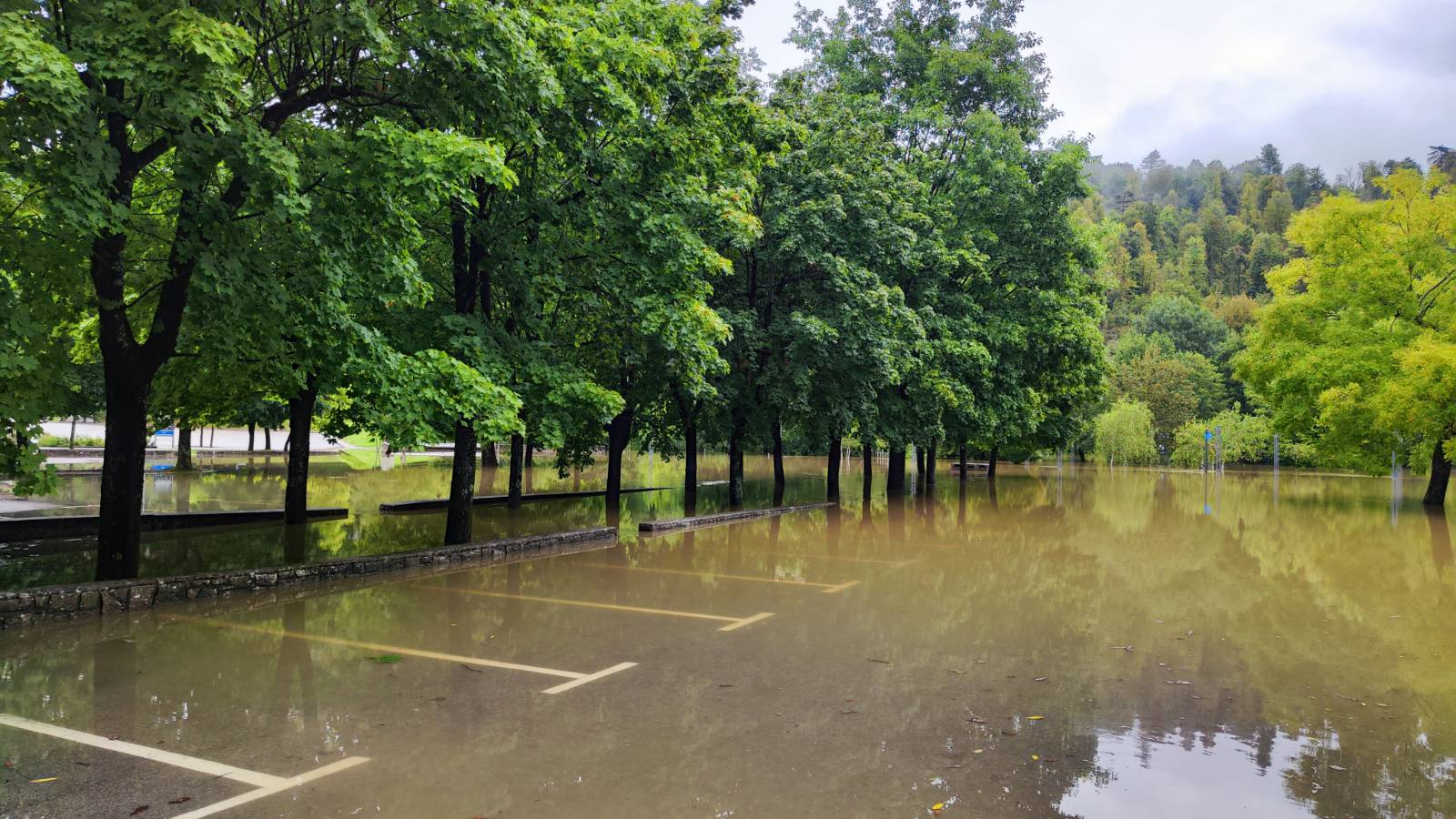 Prav to se je zgodilo pred Postojnsko jamo, kjer je v noči s petka na soboto poplavilo okoliška parkirišča. V celoti je poplavilo tudi parkiran avtomobil.