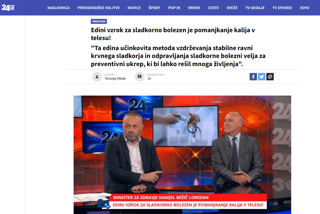 Goljufi so na spletni strani, katere podoba spominja na podobo spletnega medija 24ur.com, objavili lažni intervju z ministrom za zdravje Danijelom Bešičem Loredanom. Gre za zavajajoče oglaševanje prehranskega dopolnila za zdravljenje sladkorne bolezni, opozarjajo na zdravstvenem inšpektoratu.
