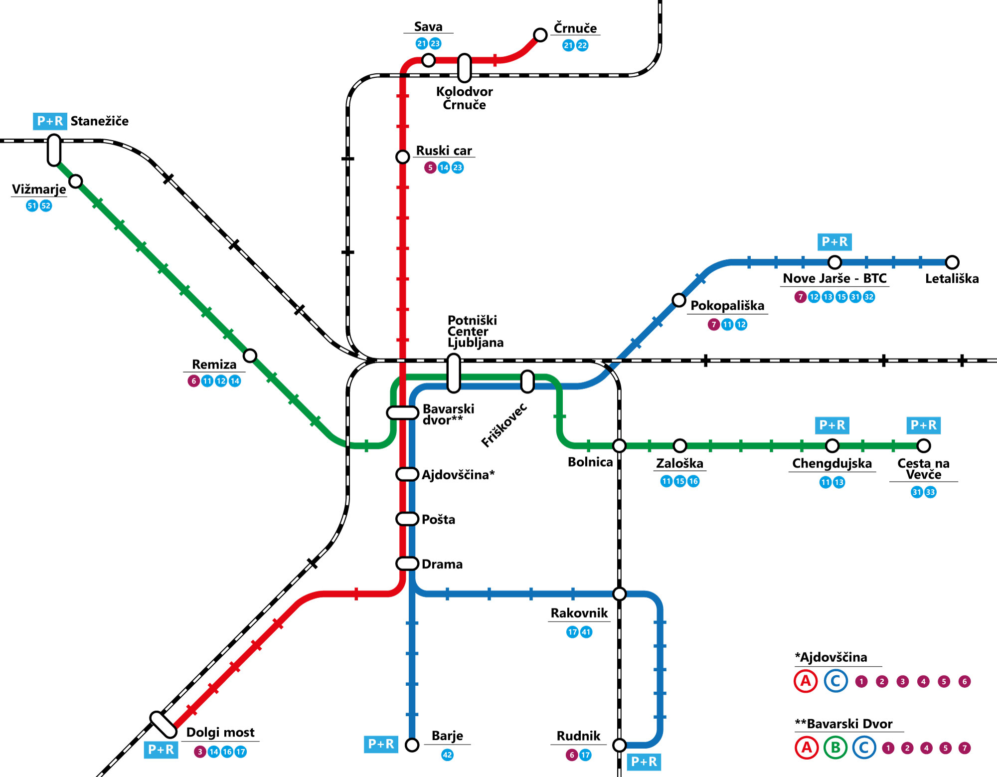 Po ljubljanskih vpadnicah bi vozili dolgi avtobusi za 200 potnikov. Zanje bi bila rezervirana sredina ceste. Sistem bi dopolnjevale dodatne obodne linije, ki bi zmanjšale potrebo po prestopanju v središču mesta. Tak sistem so si zamislili v Koaliciji za trajnostno prometno politiko, neformalnem združenju nevladnih organizacij s področja urejanja mobilnosti. Na občini Ljubljana je predlog naletel na hladen odziv.