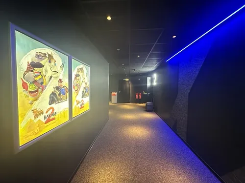 Med čakanjem na vstop v kinodvorano smo nekaj minut posedeli v kotičku za druženje, kjer je na voljo dovolj oblazinjenih počivalnikov in naslanjačev, da sprejmejo večjo skupino čakajočih. Ti si lahko v miru privoščijo pogovor, saj ni hrupno.