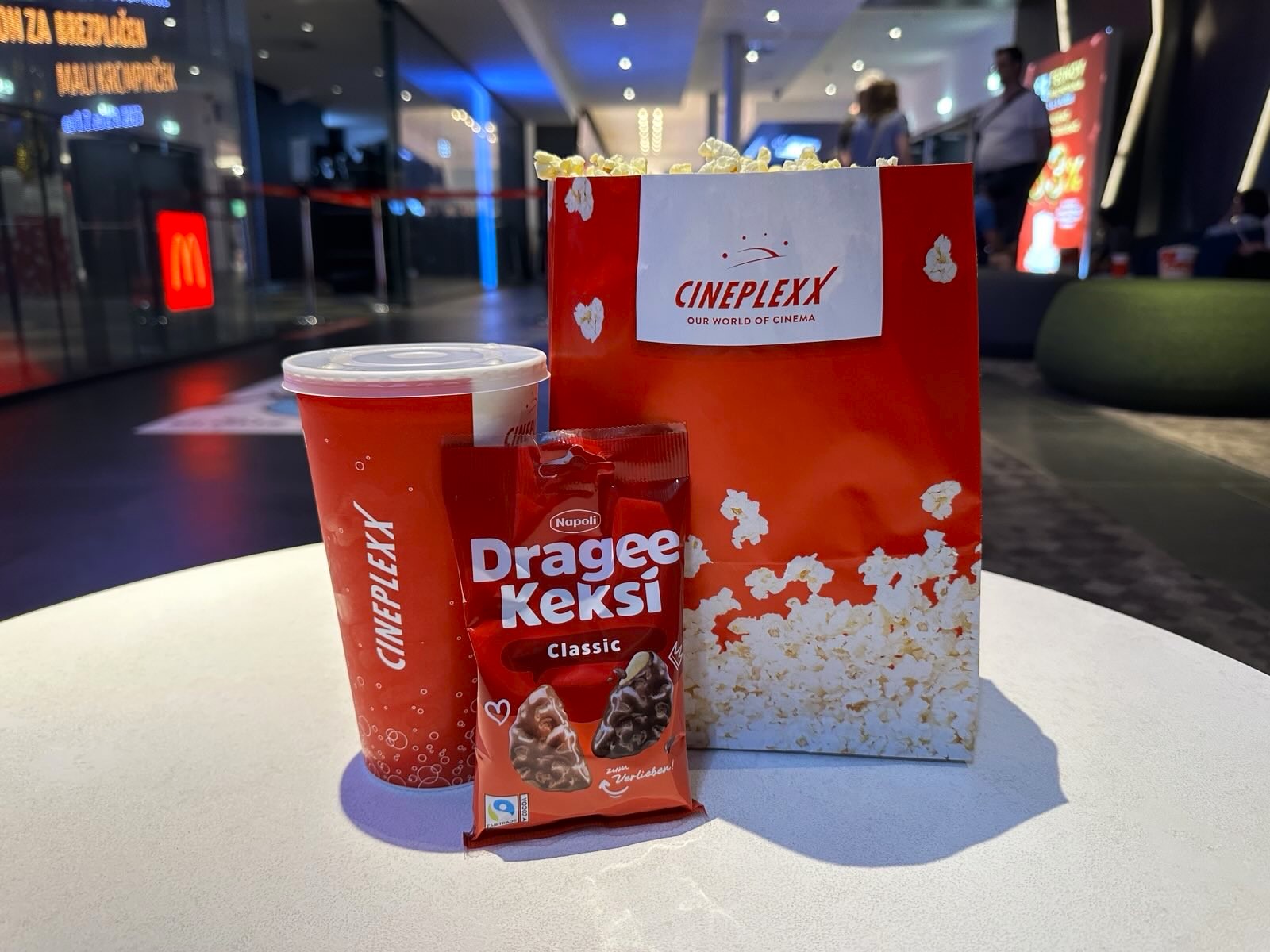 Za pijačo srednje velikosti (0,75 litra) in srednjo pokovko smo odšteli 12,50 evra, zraven pa dobili še manjše pakiranje (85 gramov) keksov. Kljub temu se nam zdi znesek za to, kar smo dobili, pretirano visok. Tudi sicer so cene prigrizkov v Cineplexxu, tako kot njihova pokovka, precej zasoljene.