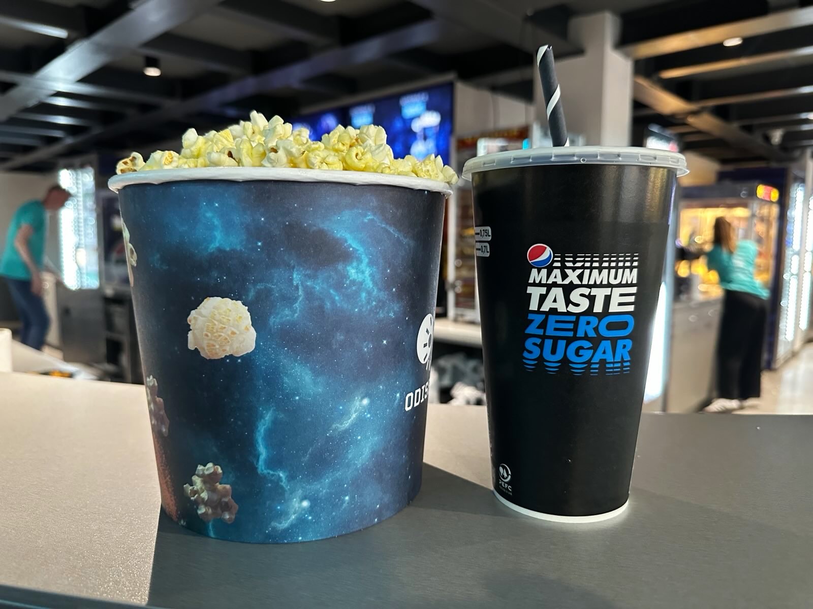 Tudi sicer so cene vstopnic v Odiseji nižje (primerjava spodaj). Prav tako je dostopnejša ponudba prigrizkov in pijače. Za srednjo pijačo (0,75 litra) in srednjo pokovko smo odšteli 8,50 evra.