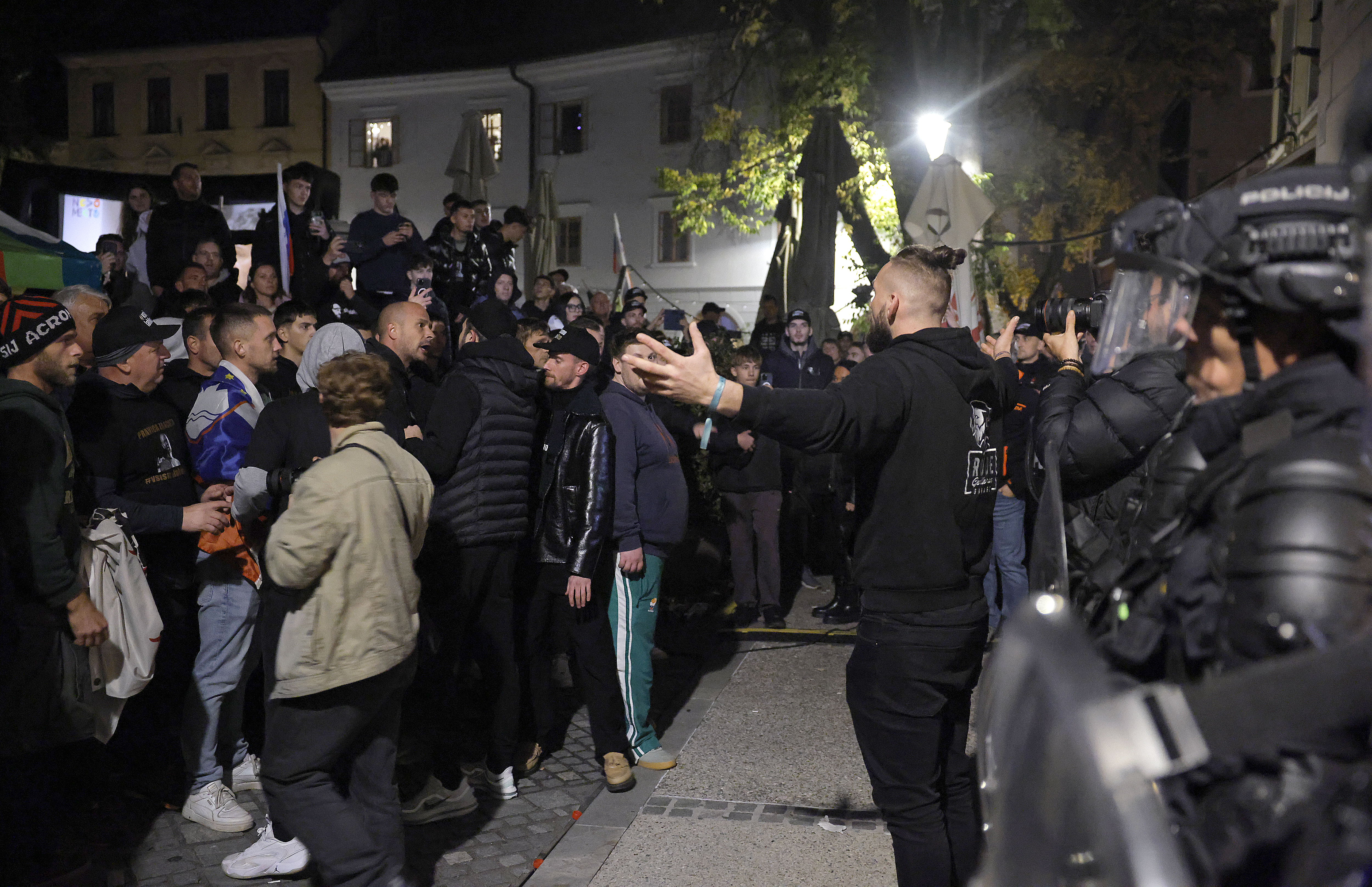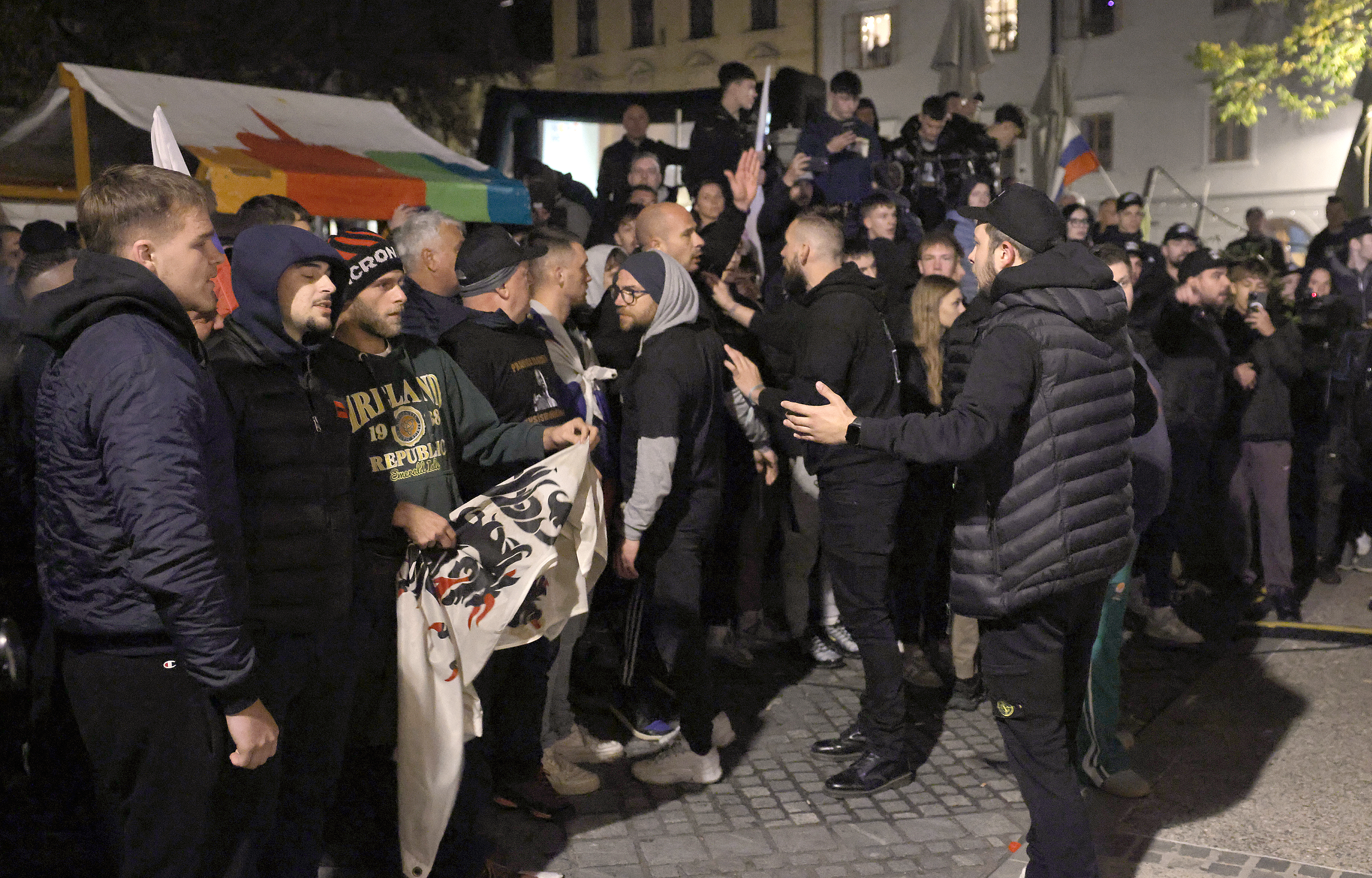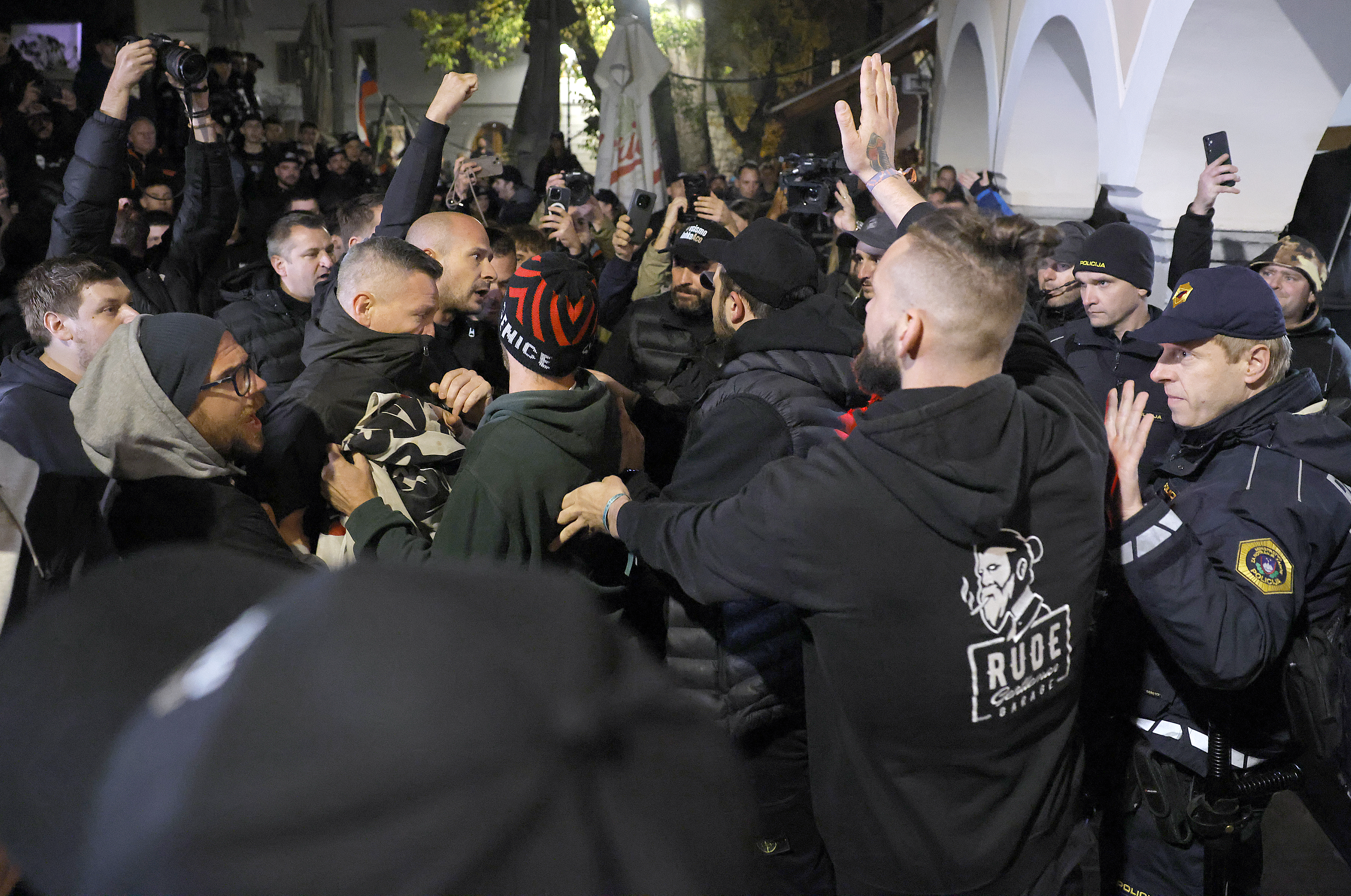 Za "nekaj vroče krvi" naj bi na shodu poskrbel moški, ki je prižgal baklo. Policisti naj bi ga prijeli za roke, navzoči pa naj bi, kot je za N1 dejal očividec, postali razburjeni. Policisti so nato moškega izpustili.