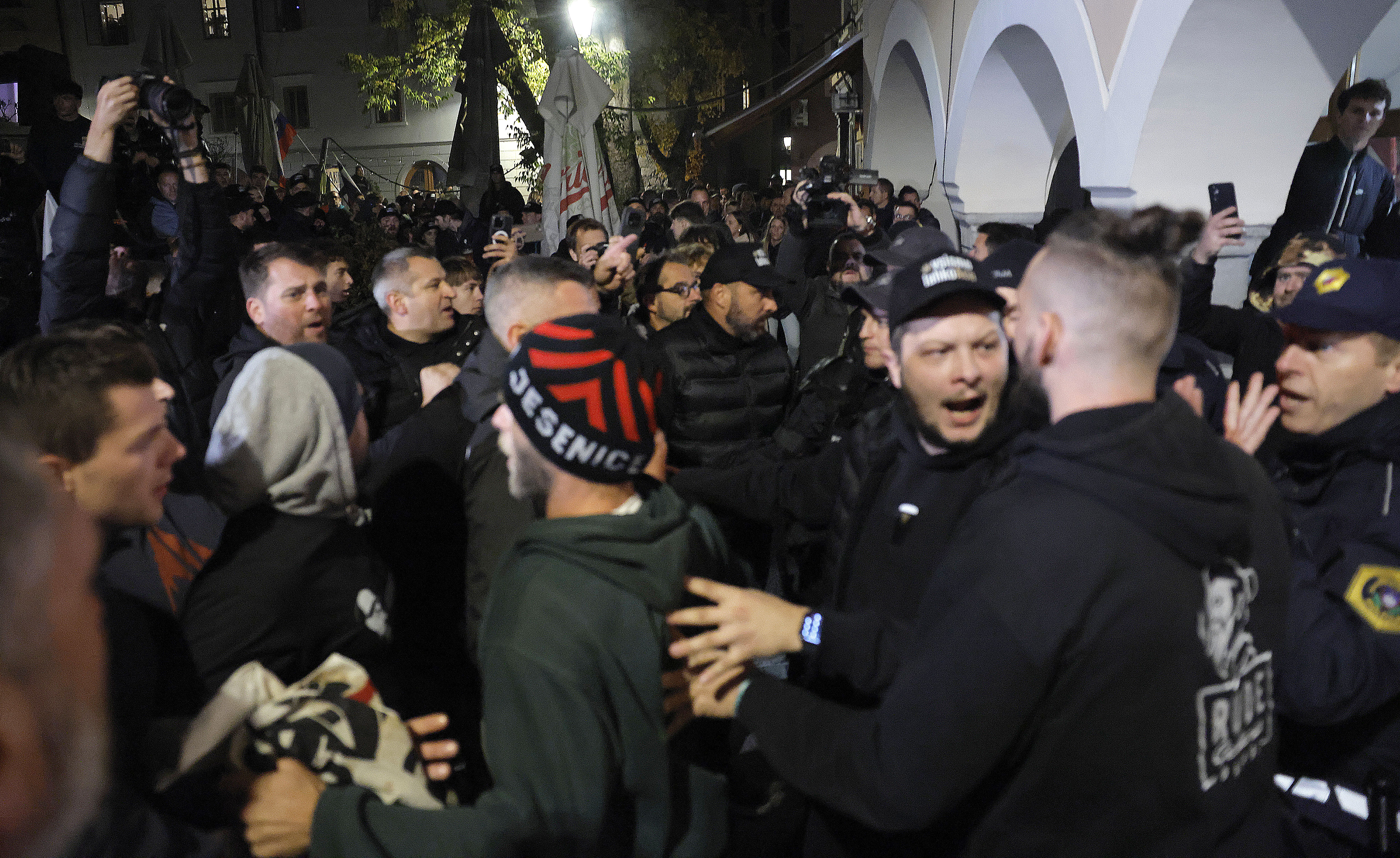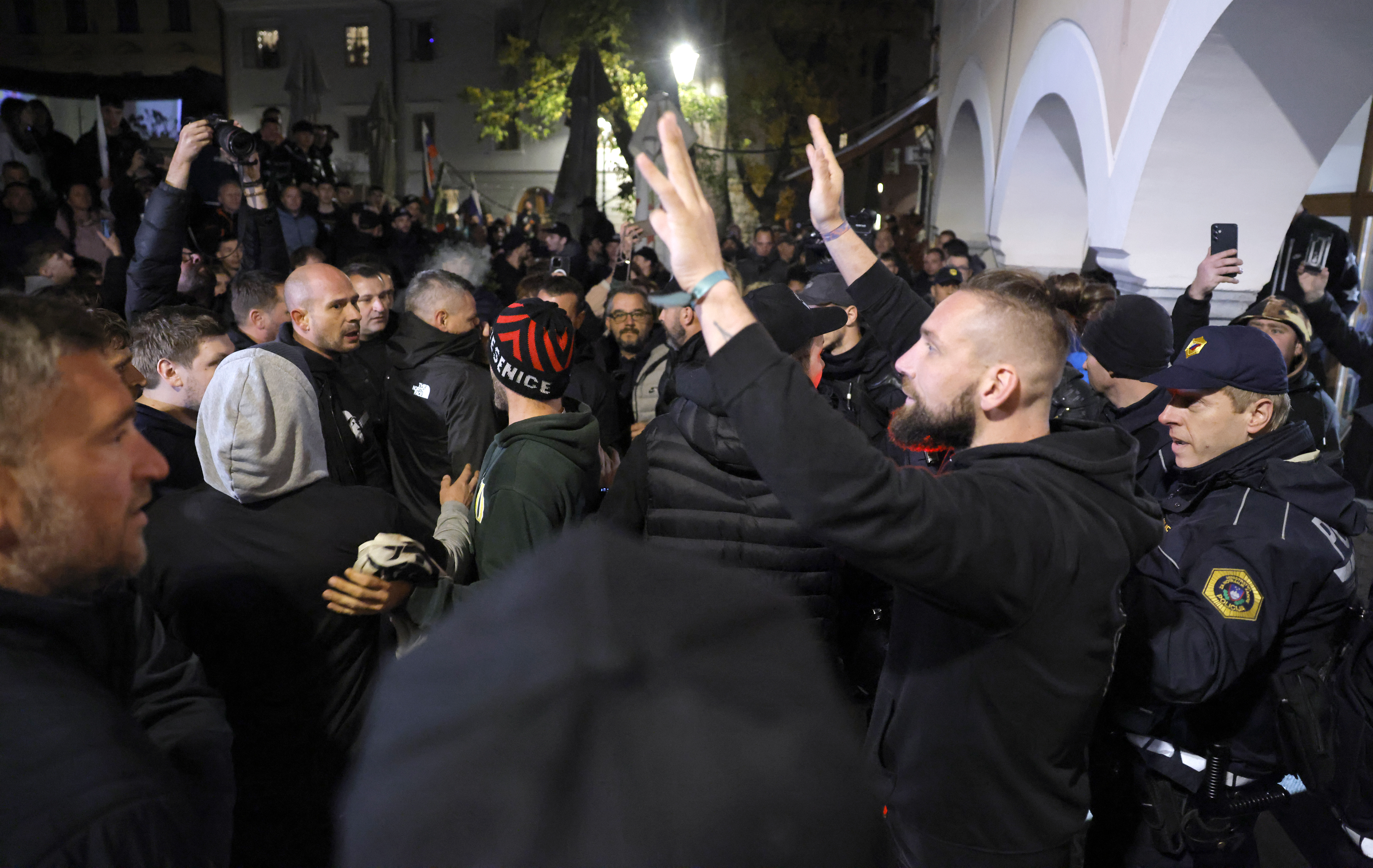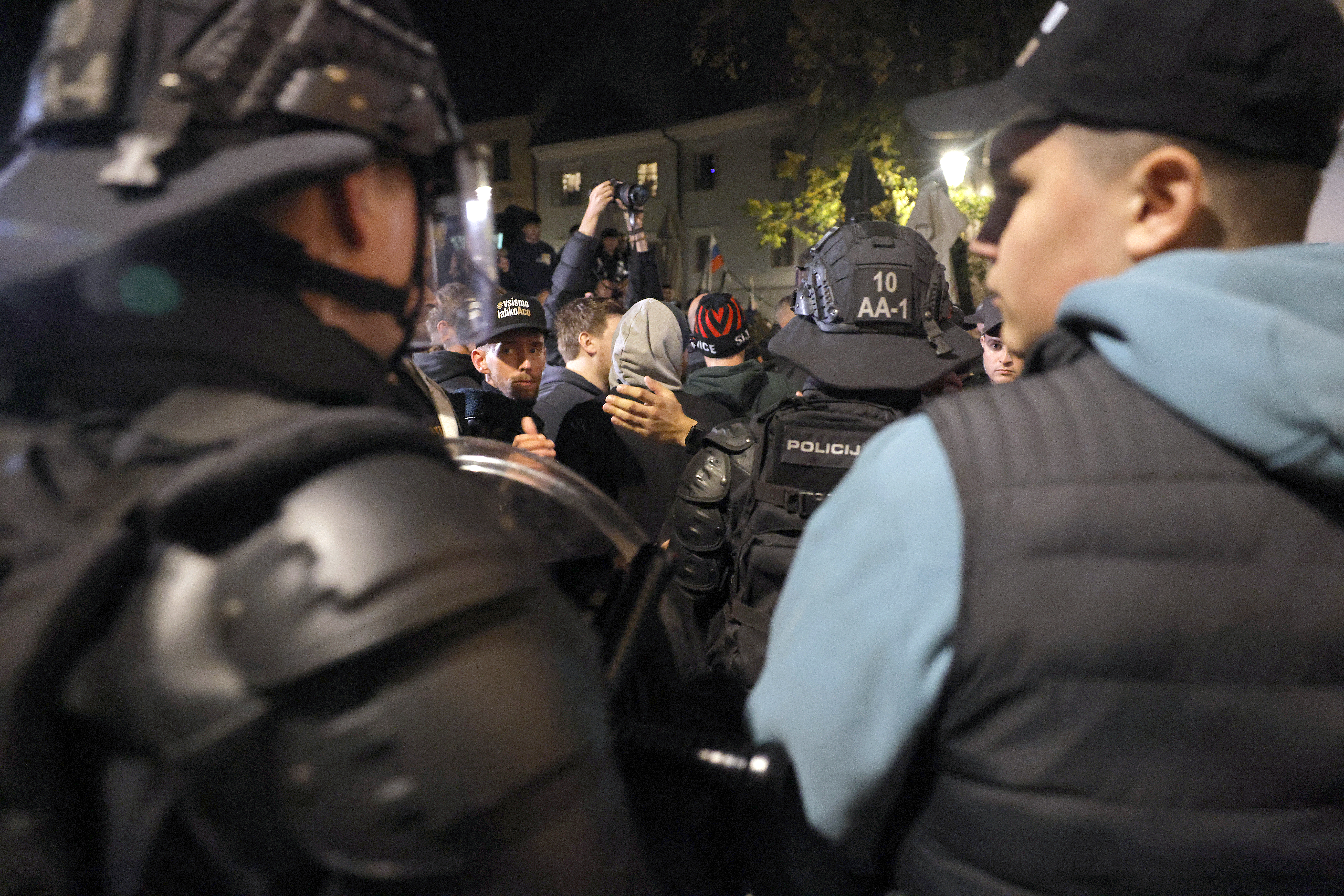 Za "nekaj vroče krvi" naj bi na shodu poskrbel moški, ki je prižgal baklo. Policisti naj bi ga prijeli za roke, navzoči pa naj bi, kot je za N1 dejal očividec, postali razburjeni. Policisti so nato moškega izpustili.