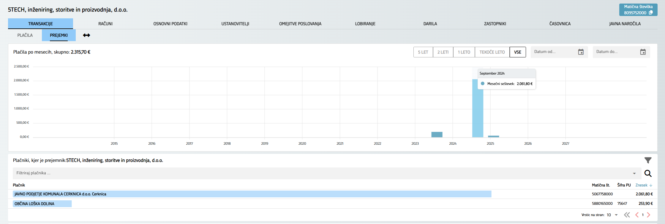 Peter Nelec je namreč ustanovitelj in lastnik podjetja 5TECH, iz Erarja pa je razvidno, da je cerkniška komunala omenjenemu podjetju septembra 2024 nakazala 2.061,80 evra. Plačilo naj bi bilo namenjeno izdelavi kovinskega vozička.