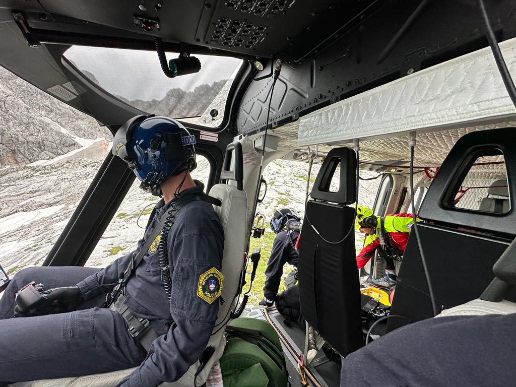 Policijski helikopter je obe nepoškodovani v zahtevnih vremenskih razmerah prepeljal v dolino. Reševanje je oteževal veter.