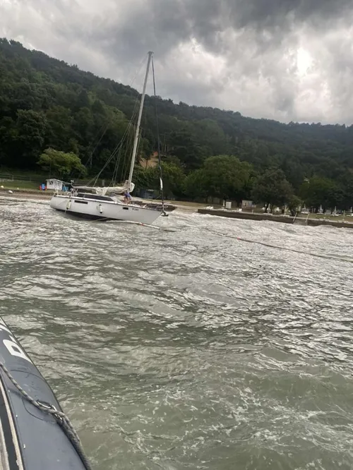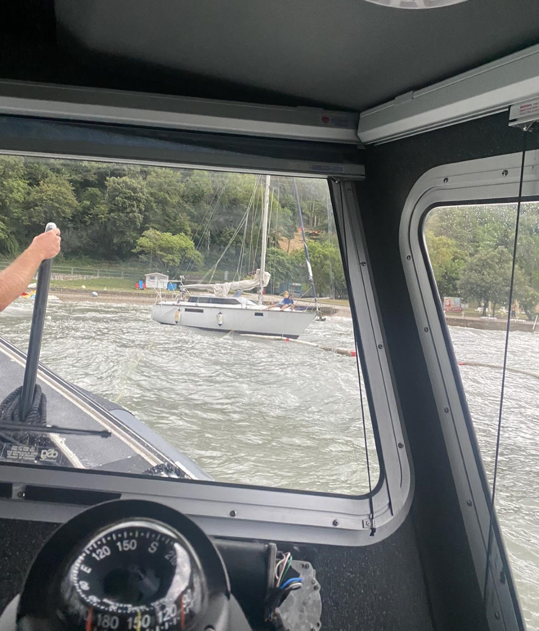Dostop do jadrnice je bil zelo težek, saj je zelo močno pihalo, ob tem pa je bilo morje na tem območju plitvo. Policistom se je s čolnom vseeno toliko uspelo približati, da so jadrnico privezali na svoje plovilo. Ko so jo poskušali odvleči stran od obale, se je vrv strgala, saj je jadrnica nasedla. Kasneje je 47-letniku na jadrnici vseeno uspelo plovilo privezati na bojo.