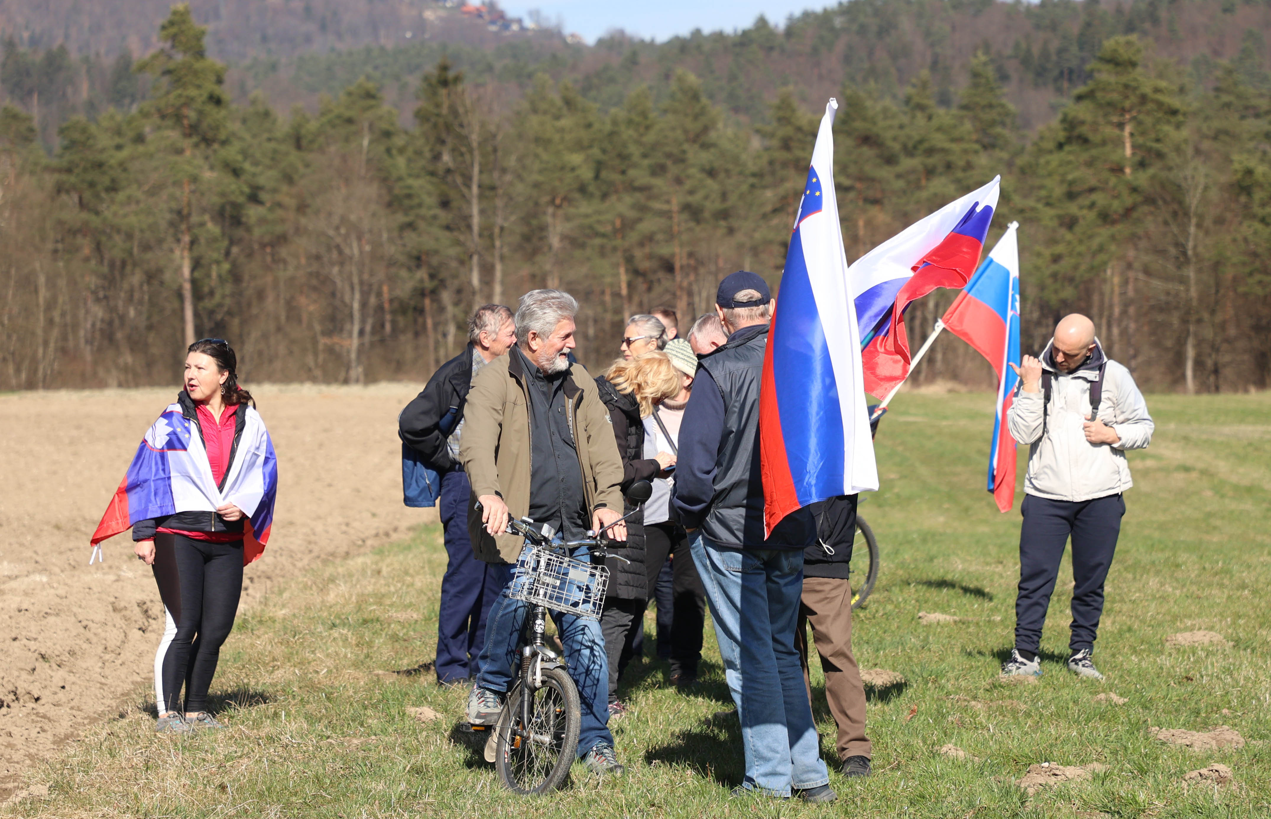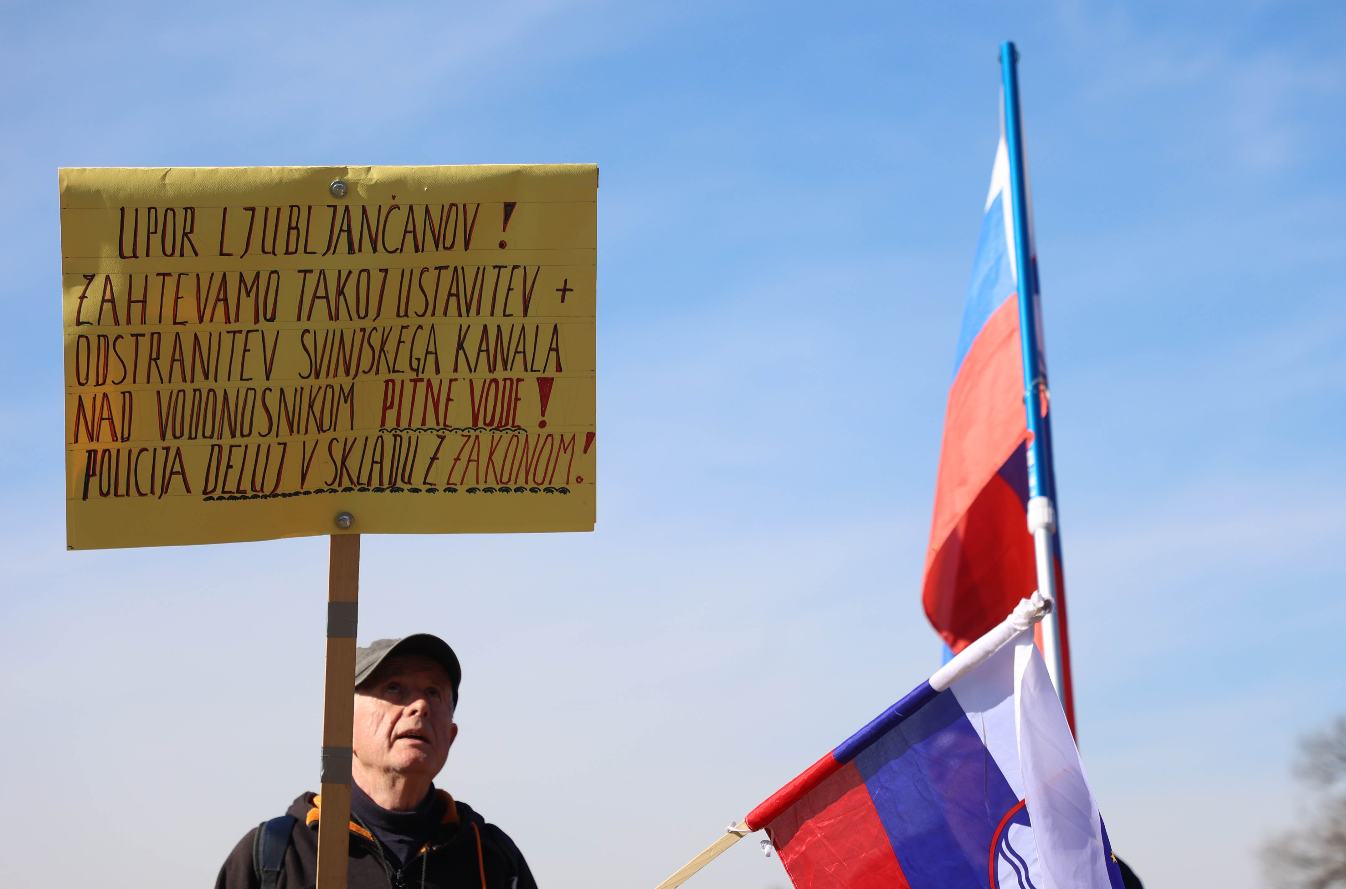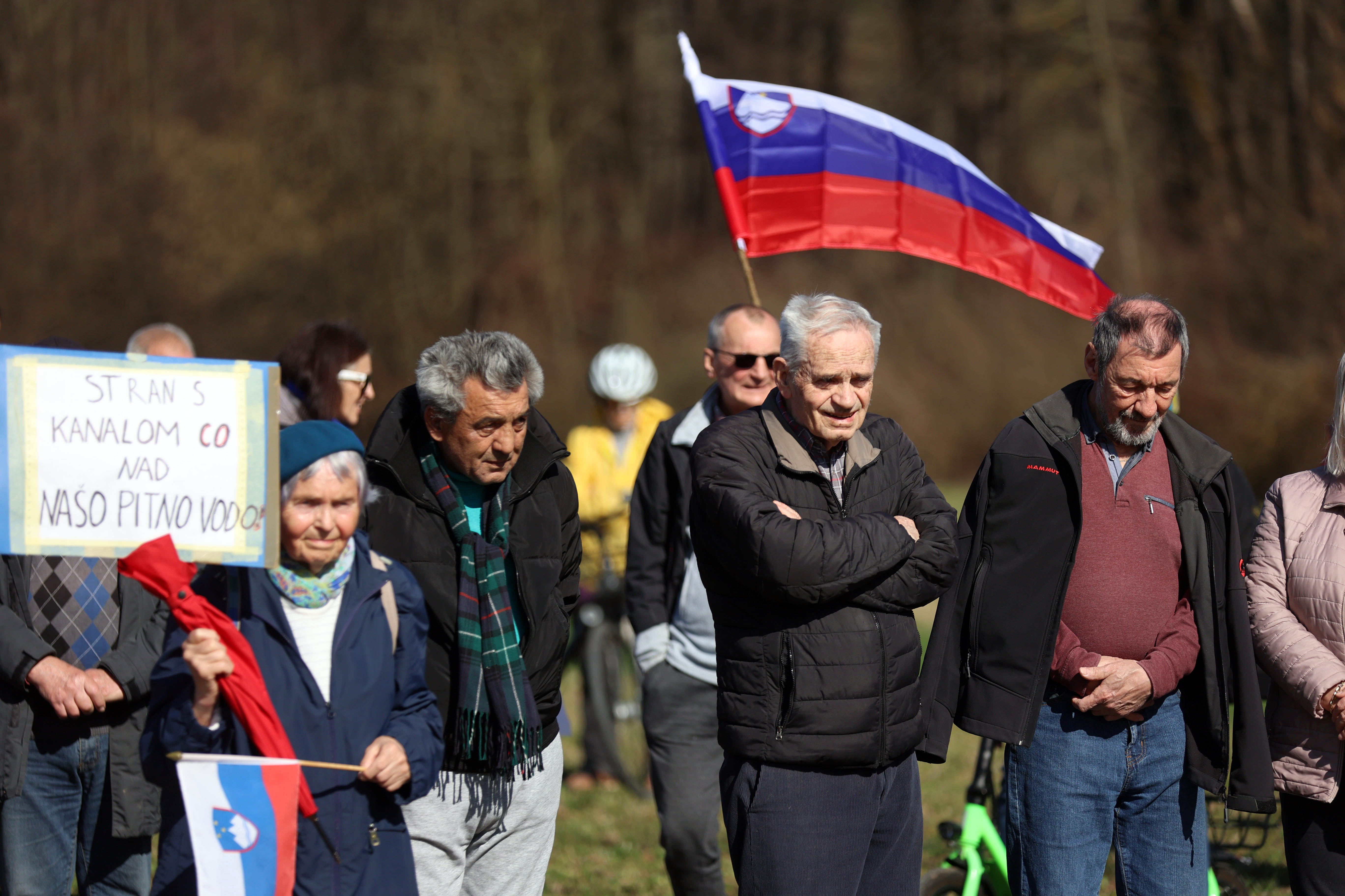 Zbralo se je sicer več deset protestnikov, ki so vihteli slovenske zastave in sporočali, naj se prekine z gradnjo povezovalnega kanala, po katerem bodo kanalizacijske odplake iz Medvod in Vodic tekle proti nadgrajeni osrednji čistilni napravi v Zalogu.