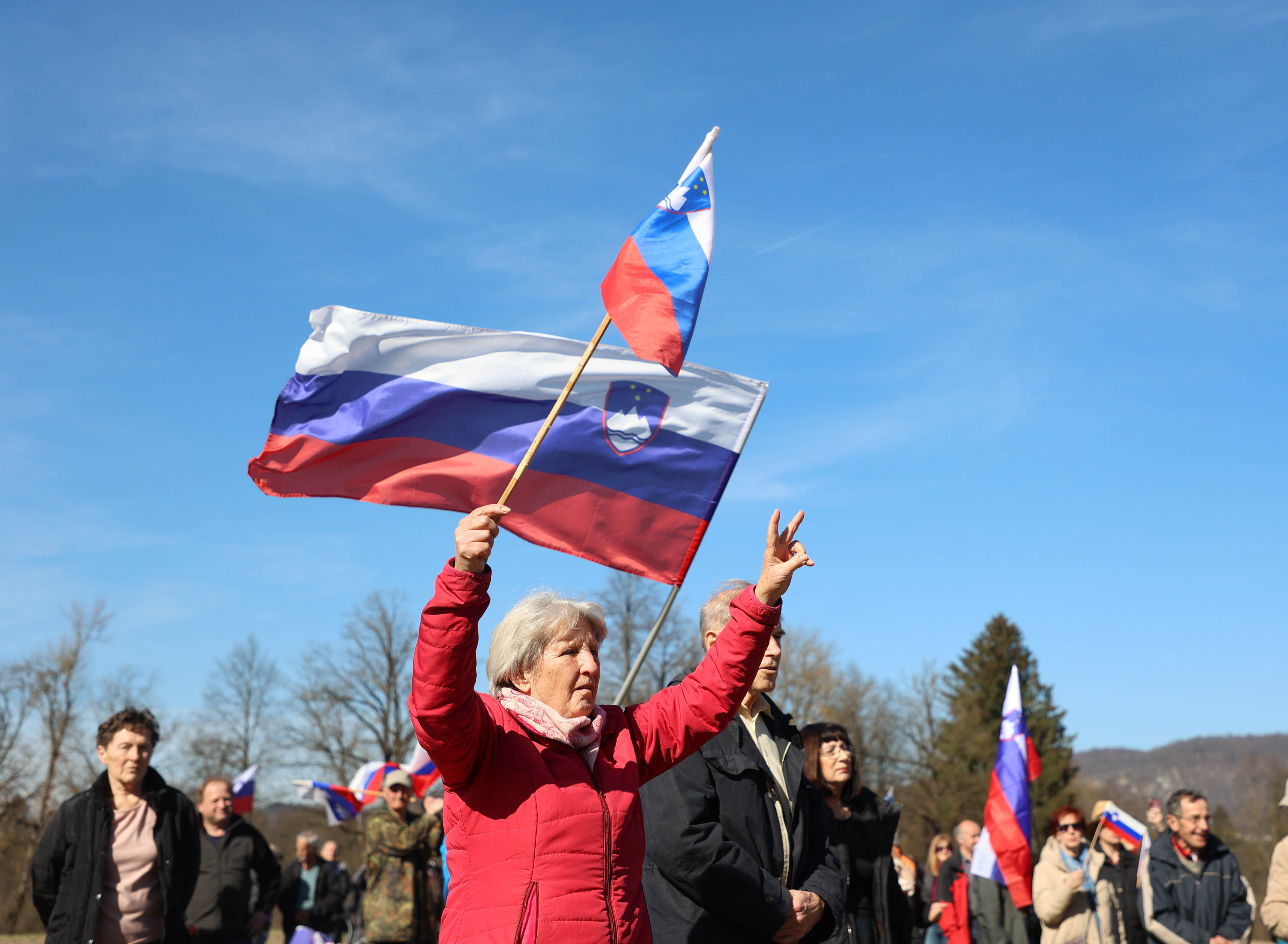 Protestnike, opremljene s slovenskimi zastavami, sta med drugim nagovorila mestni svetnik Aleš Primc in nekdanja poslanka ter mestna svetnica SDS Mojca Škrinjar.