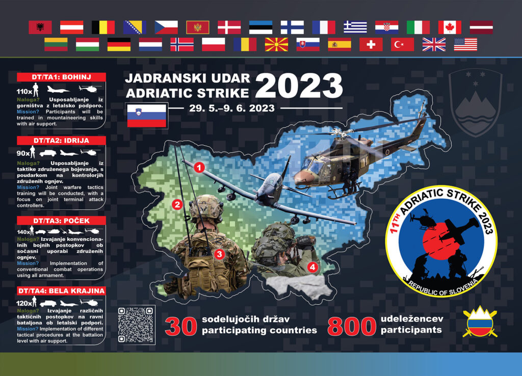 Začela se je tradicionalna vojaška vaja Jadranski udar, na kateri Slovenska vojska v sodelovanju z zavezniškimi državami usposablja kontrolorje združenih ognjev. Do 9. junija bodo tako Bohinj, Idrijo, Poček in Belo krajino preletavala letala, helikopterji in brezpilotni letalniki.